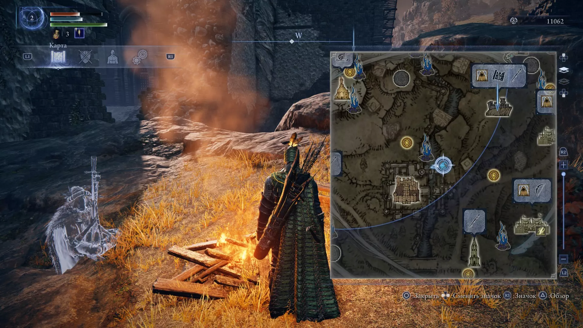 基本信息-您选择的物品(剑、杖、盾牌等)即使不在手中也会提供增益。带有红色笔画的手图标的物品只能在手中提供增益。需要在手的物品可以简单地在活动槽中,不会被使用(当你双手拿着武器时)。 -不要忘记出售不必要的文物,从罐子里以600英镑的价格购买“宁静的壮丽图像”(随机文物)。 -杀死两个老板后皮肤打开 从一天开始到第一圈结束,每圈计时4.5分钟 3分钟完成第一轮 第二轮结束前3.5分钟 距离第二圈结束还有3分钟黑夜老大出现 在第一晚或第二晚结束前只有14分钟的学习时间 地图 地图是我们的主要助手。 尽量经常打开它,按位置调整你的路径。为了更容易导航,我建议你学习并记住所有的关键点(图标)。