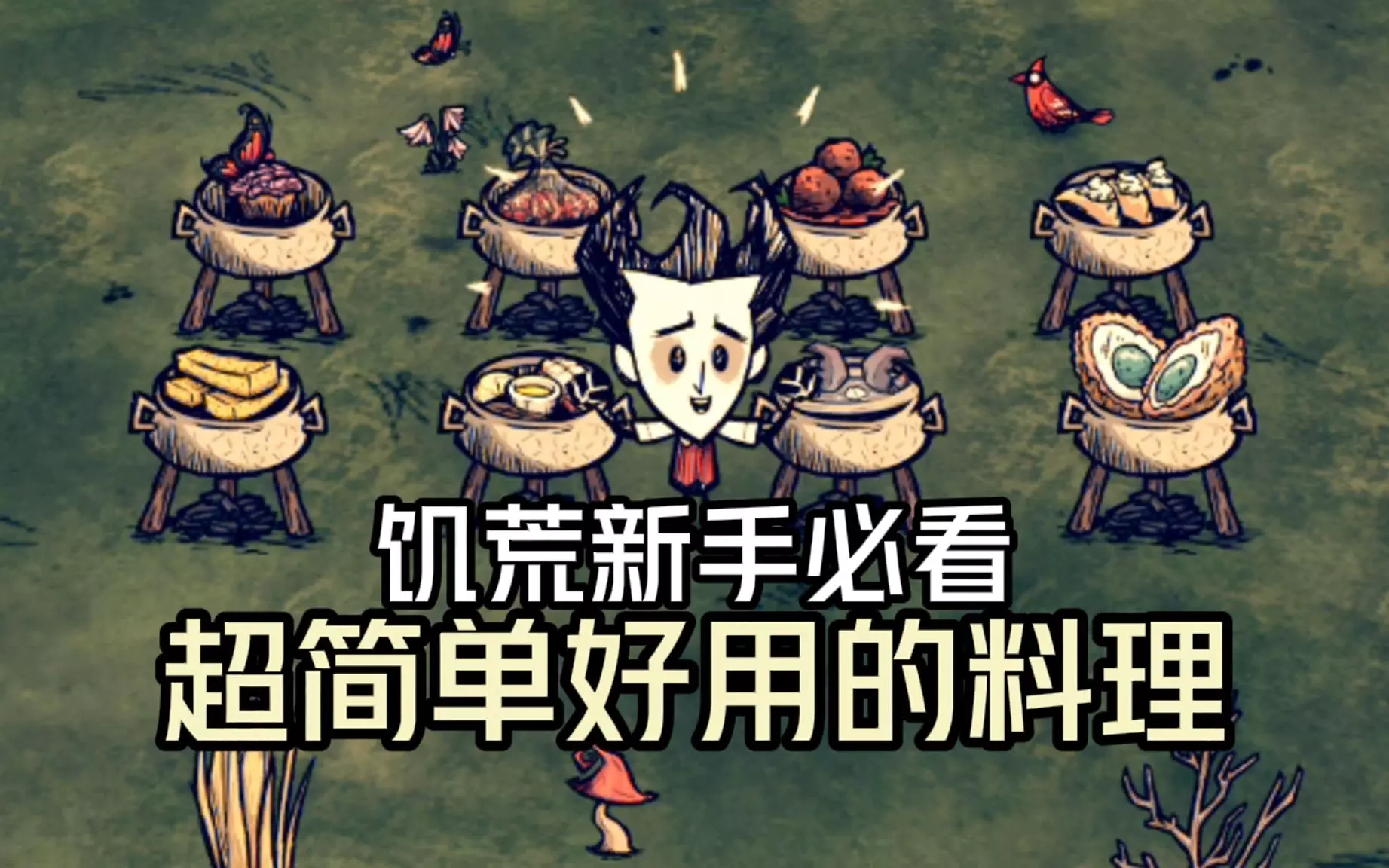 这是《Don't Starve饥荒联机版》的游戏实况解说,展示了开局速建高脚鸟工厂的方法,能实现无痛取蛋,解决饱食问题,帮助玩家前期快速成型基地。