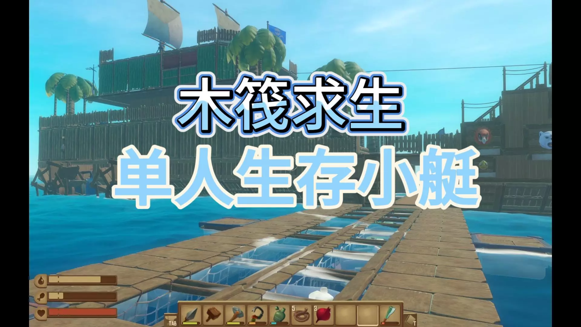 这是生存游戏《木筏求生》的单人实况P35内容,展示了玩家在游戏里进行木筏室内装饰的过程,目前室内装饰已初具雏形,玩家可借助各类建筑模块搭建木筏设施。