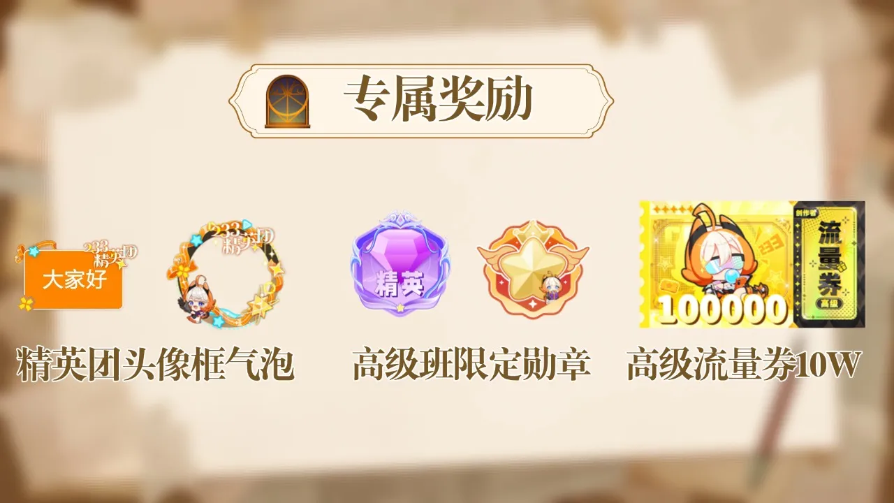 优秀创作奖(若干):合格的小伙伴即可获得限定高级班推荐卡*1+233乐园会员*10天