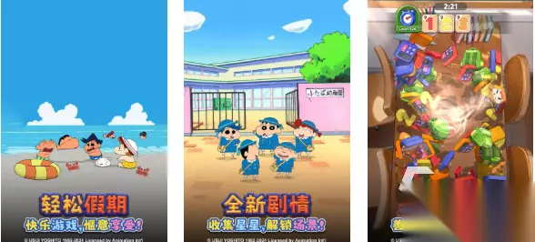 这是款继承了蜡笔小新精髓的休闲消除主题小游戏,美术风格和音效方面都是蜡笔小新的主题,高互动性和策略消除的设定别具一格,本作杜撰了全新的蜡笔小新剧情带来不俗的新鲜感,轻松消除度过暑假的流程也十分舒适,关卡内容多样带来的消除乐趣别具一格,极快的匹配消除速度也为本作润色不少。 手机扫码下载233乐园APP预约 预约订阅最新动态 优先233乐园APP下载 5、《蜡笔小新大闯关》