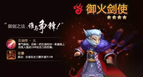 雪舞来给大家介绍下御火剑使的技能,他有巨剑符,能够召唤一把巨剑对直线敌人造成120%攻击伤害!而且还有被动技能——狂暴,将自身攻击力额外提升10%!简直不能再给力,只要在游戏中拥有到邪剑仙~什么妖魔鬼怪都不怕了!