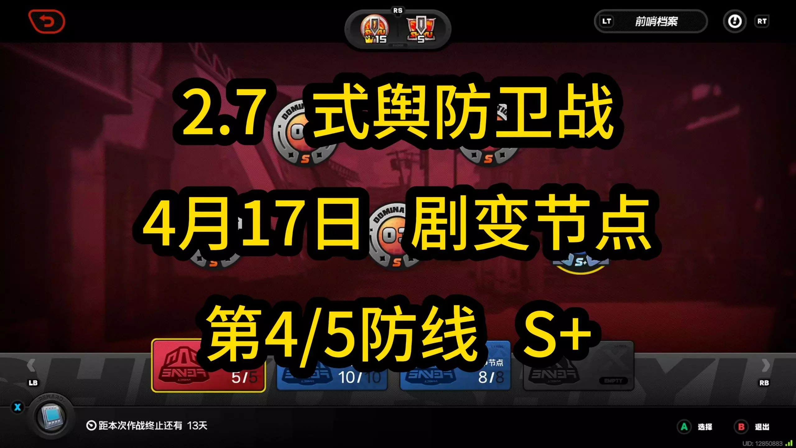 中低配,录制于20260417,2.7 第四防线 / 第五防线 第一间(仪玄 橘福福 卢西娅) 第二间(叶瞬光 琉音 照) 第三间(雅 南宫羽 浮波柚叶)