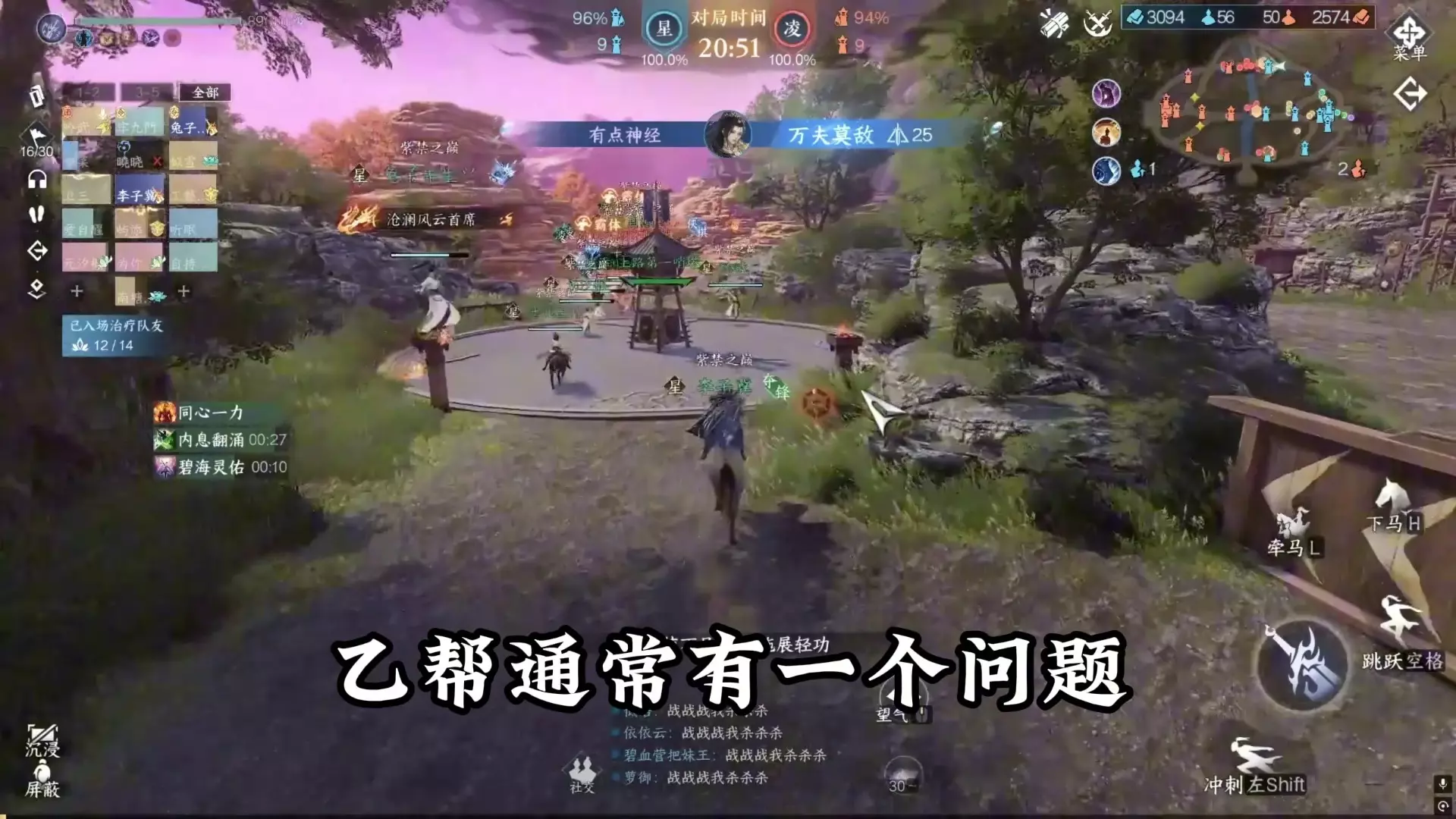 这是天涯明月刀手游的一场对战内容,呈现了剑影无双对阵护花铃的战场画面,过程中玩家间有争执言论,还调侃了名为“终极送子”的玩家疑似代打,展现了游戏帮会战的热闹与趣味。