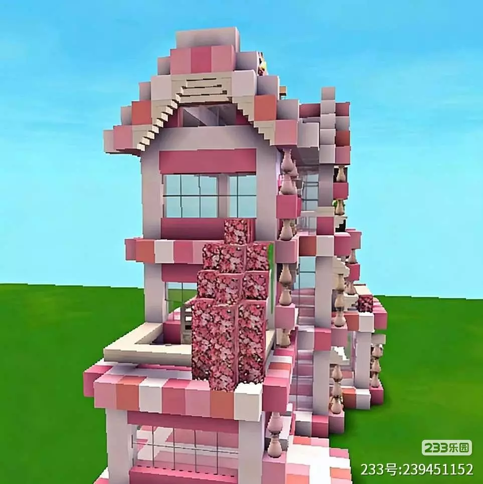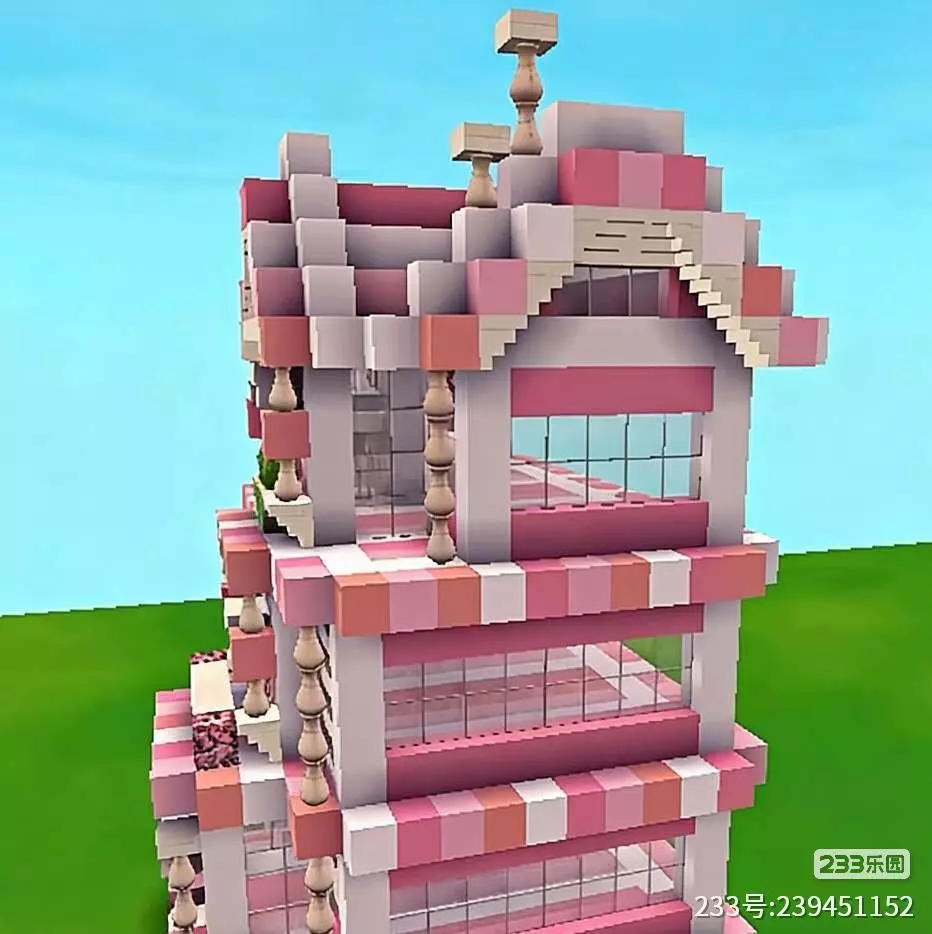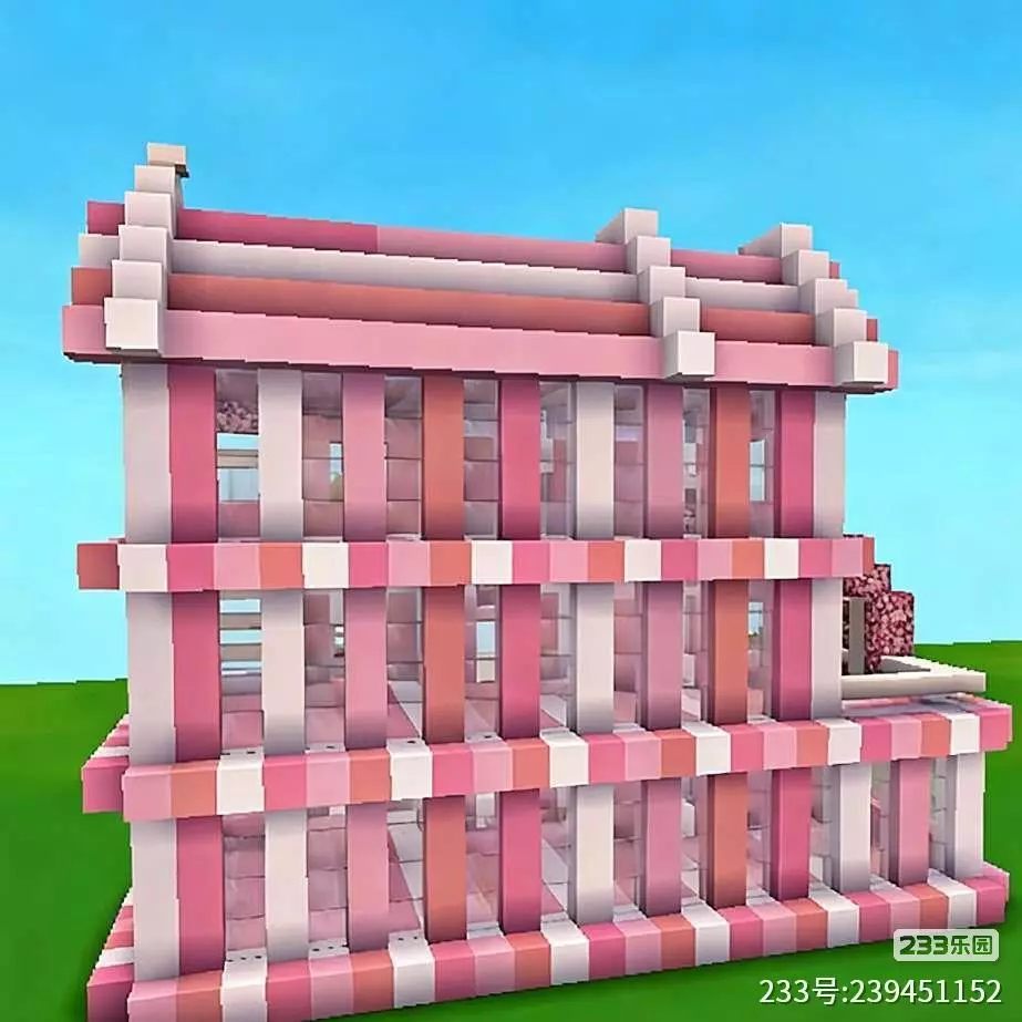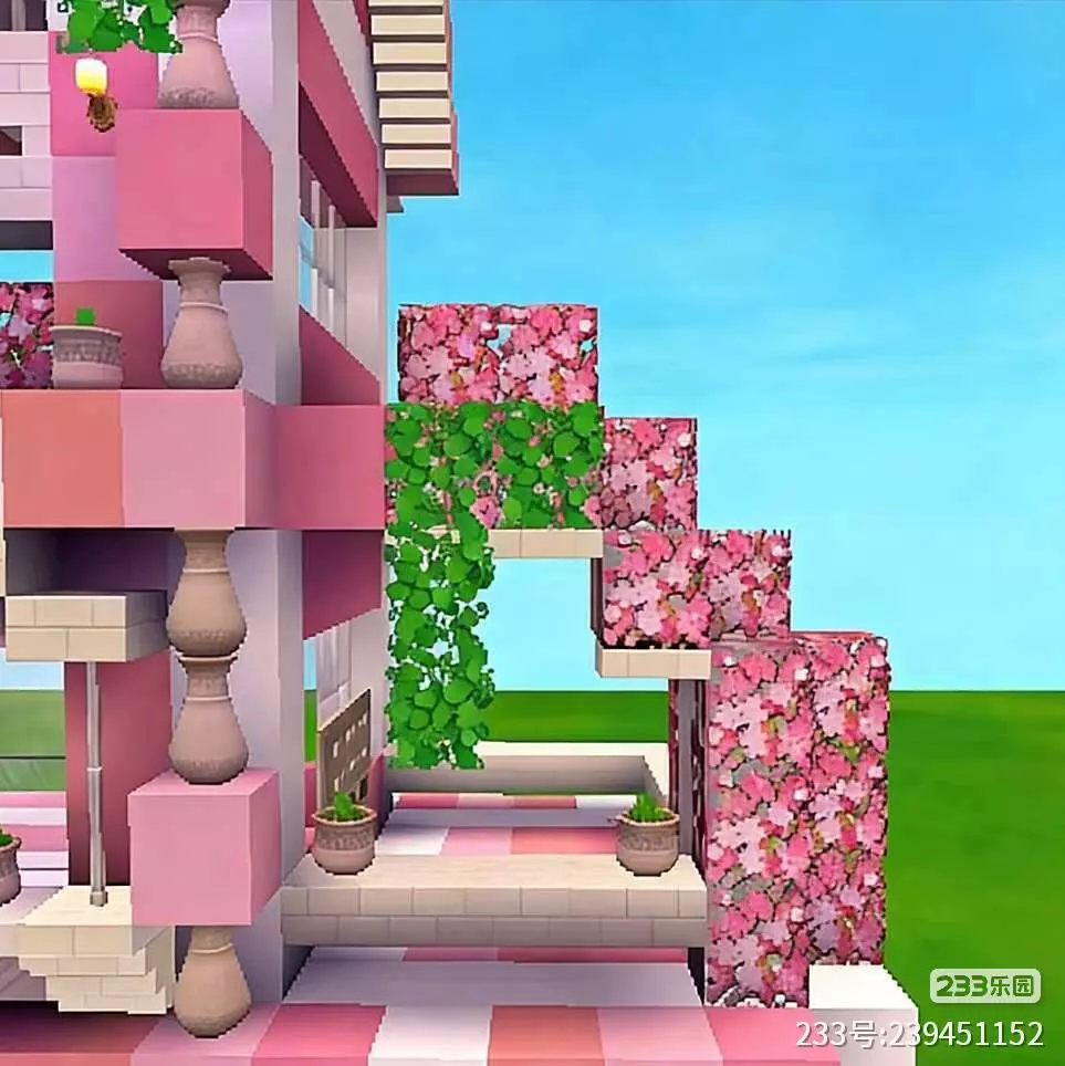 这是迷你世界创作月榜中的浪漫粉色多层像素建筑,外观以粉白配色为主,搭配绿植装饰,设计精致充满少女感,展现了迷你世界的创意建造玩法。