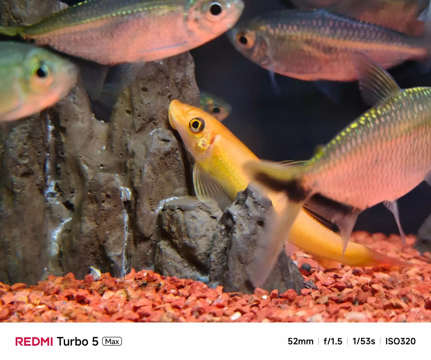 这一点从功耗上也能看出来,红米REDMI Turbo 5 Max在半个小时崩坏·星穹铁道的游戏过程中平均功耗达到了惊人的8W。当然,激进的性能释放也就意味着激进的温度,红米REDMI Turbo 5 Max的正面最高温度达到了49.9℃,背面最高温度达到了49.6℃,手持时,已经有非常明显的痛感了。如果仅从游戏帧率的角度考虑,红米REDMI Turbo 5 Max算得上近期2500档的最佳选手之一,但是高负载条件下的温度也不能忽视,当然用户完全也可以在崩坏·星穹铁道中关闭狂暴引擎,来换取更平衡的功耗,只能说狂暴引擎确实够狂暴。影像红米REDMI Turbo 5 Max首发了光影猎人600,5000万像素,1/1.95英寸,F1.5光圈+12.5EV动态范围,定位并不高,不过得益于双原生ISO Fusion等技术的引入和F1.5大光圈,实际成像效果还算不错,整体来说比较干净,表现接近光影猎人800。