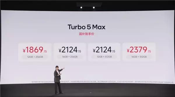 快科技1月29日消息,今日晚间,REDMI Turbo 5 Max正式发布,起售价是2199元。具体来看,12GB+256GB售价2199元,16GB+256GB售价2499元,12GB+512GB售价2499元,16GB+512GB售价2799元,国补后的到手价是1869.15元起。