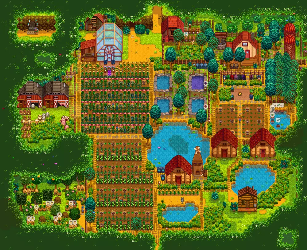 Stardew Valley农场灵感,检查每个农场的设计:)这样你就可以得到最美丽和最有美感的农场。