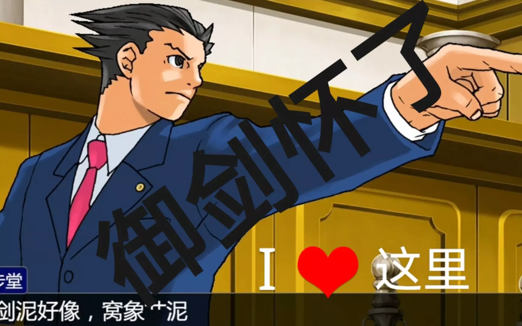 这是将《庄子与惠子游于濠梁之上》与《逆转裁判》结合的二次创作内容,目前该重置内容已完成,画面呈现了御剑在法庭场景中与庄周相关的趣味互动。