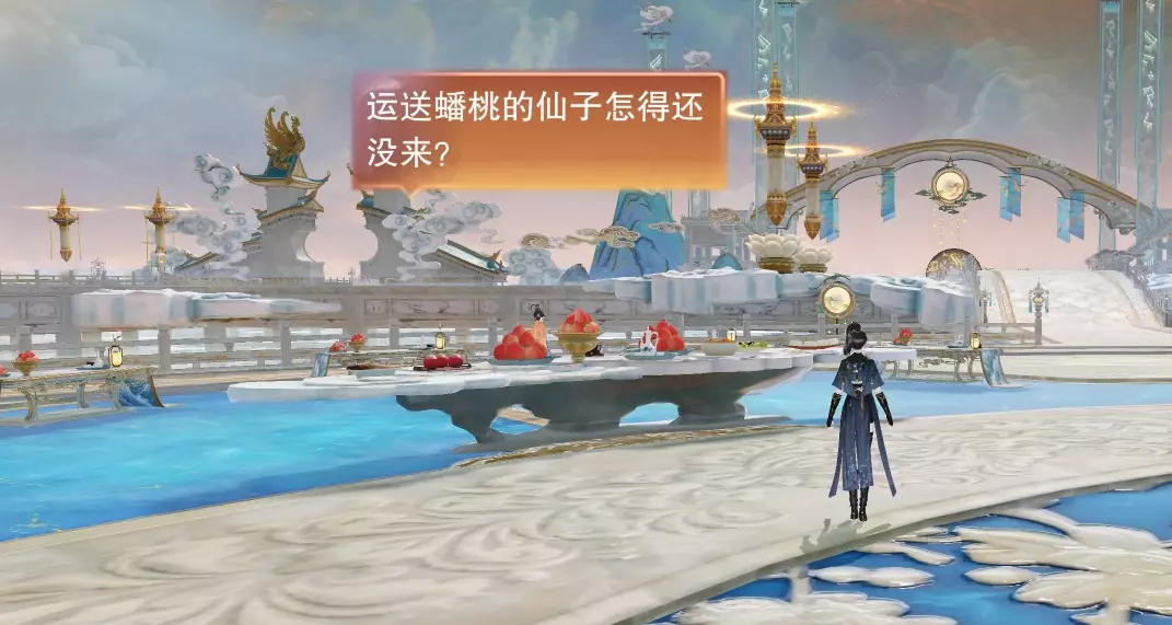此处蟠桃千年一熟,神仙御风而行。昔日大圣挥棒闹天,而今少侠踏云登顶。