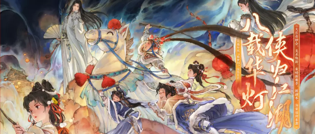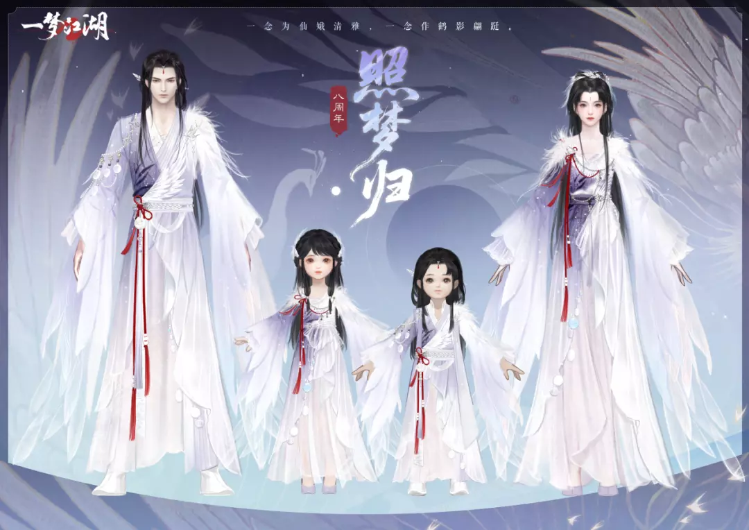 🕊江湖风华,刹那惊鸿。全新美术重塑企划—惊鸿计划上线。此间江湖将从人物模型、时装品质、江湖风景等多方面进行全面美术升级。首批优化将在八周年庆上线,重塑江湖美术的绝代风华。