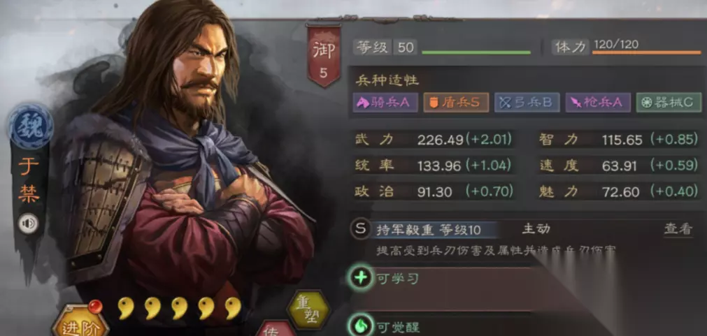 于禁作为魏国五子良将之一,其兵书选择需围绕其核心定位展开。由于自带战法持军毅重兼具输出与负面效果,兵书需平衡生存与爆发。推荐优先选择防御型兵书如铁壁或金刚,通过提升抗打击能力弥补战法带来的兵刃易伤缺陷。若追求稳定输出,可搭配临危不乱与百战,前者提供负面状态驱散,后者增强战法发动率。需注意兵书属性需与阵容战术联动,避免单一强化导致战场适应性不足。