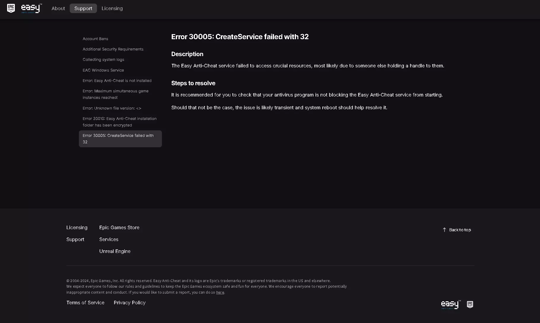 可以看到,这个错误意味着:“Easy Anti-Cheat 服务无法访问关键资源,很可能是因为其他人持有它们的控制权。” 总结:游戏进程在加载后,通过小蓝熊尝试访问资源时,被系统中某个程序(或驱动)以独占/Hook 方式占用了这些资源,从而触发了非法访问(c0000005)+DEP 防护(BEX64)+ 堆栈哈希崩溃。 个人原因 结合上面的结论,最终就好摸排多了。我个人的原因是,因为我打黑夜君临是和亲友联机语音的,而我的语音服务启动了独占 WASAPI。(WASAPI有两种模式,一个共享一个独占,我开了独占)。 如果程序独占使用了AudioClient::Initialize(..., AUDCLNT_SHAREMODE_EXCLUSIVE, ...),就会让系统返回AUDCLNT_E_EXCLUSIVE_MODE_NOT_ALLOWED 虽然黑夜君临连局内语音都没有,但是小蓝熊还是会检查,尤其WASAPI本质还是COM接口,若被锁定或 COM 线程未释放,小蓝熊认为设备被篡改,而小蓝熊作为反作弊软件,就主动结束了程序——如procmon所监控到的那样。 解决方法就是切成共享模式就行了,到现在高强度打了14个小时都没触发闪退。 虽然闪退表象许多人可能是共通的,但是原因可能每个人的系统环境和后台服务都不一样,请自行按错误日志排查问题。 因为很多人都有闪退问题,但是我其实并不觉得每个人和我闪退原因这么巧合地和我一样都是wasapi独占问题,就像有人开腾讯软件闪退,而我挂着QQ没什么问题(可能是QQ进程占用的服务不一样)。而且也有人无语音也触发了这种闪退,也有可能是其它服务独占or其它问题。 每个人的系统环境和后台服务都不一样,请按系统内的具体错误日志和procmon程序监控,具体分析来排查问题。 但是我觉得大体思路是正确的,按这个思路走大多数都能找到自己的问题所在。 更新 结论:更新bios解决需要更新最新版本的bios,我是ROG的主板,不同厂商提供的主板support不一样,自行去对应主板厂商站点下载更新bios文件更新一下bios。如果有启用bitlocker保护记得备份bitlocker恢复密钥并在操作系统挂起bitlocker加密。