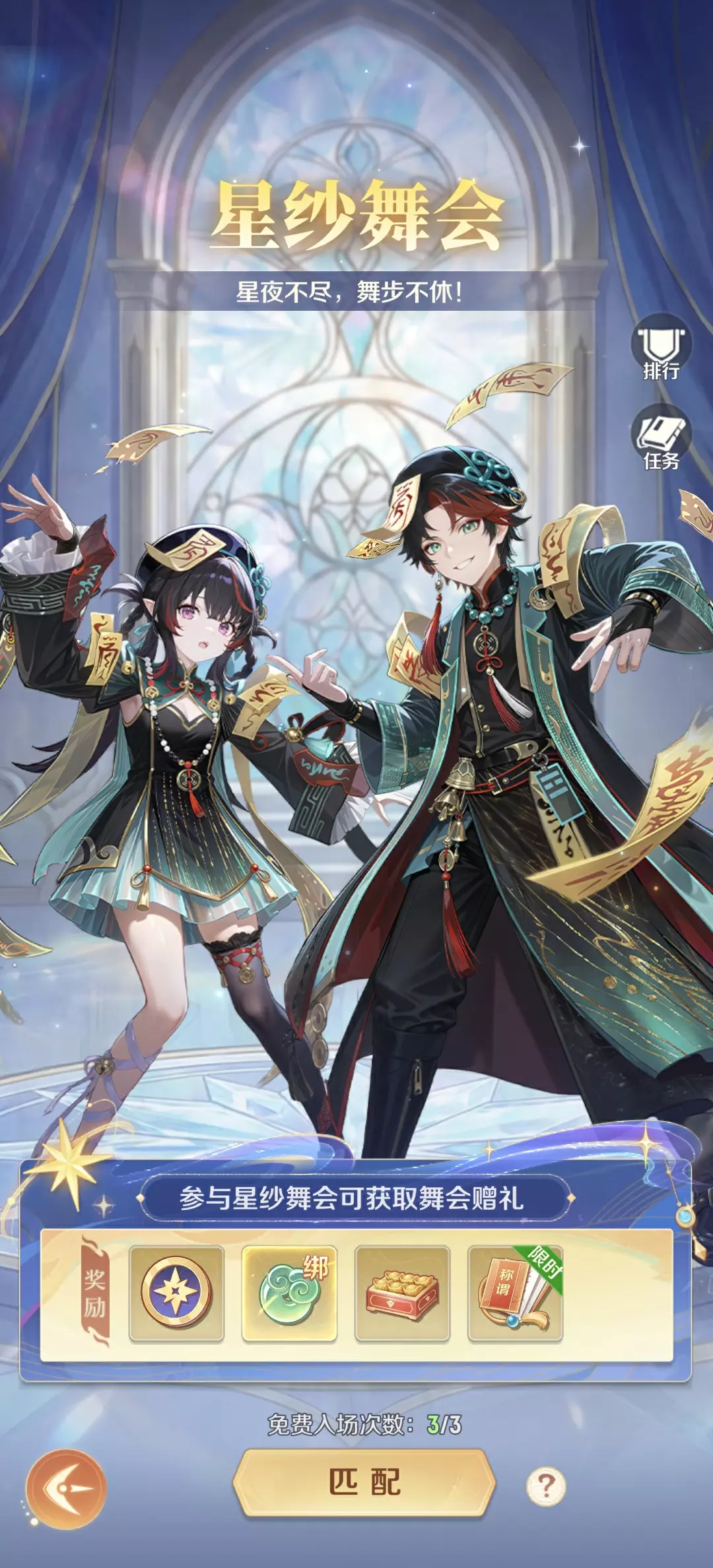 1.星纱舞会:可获得绑定仙玉、通宝、星币,冲击排行榜还有机会获取限定称号