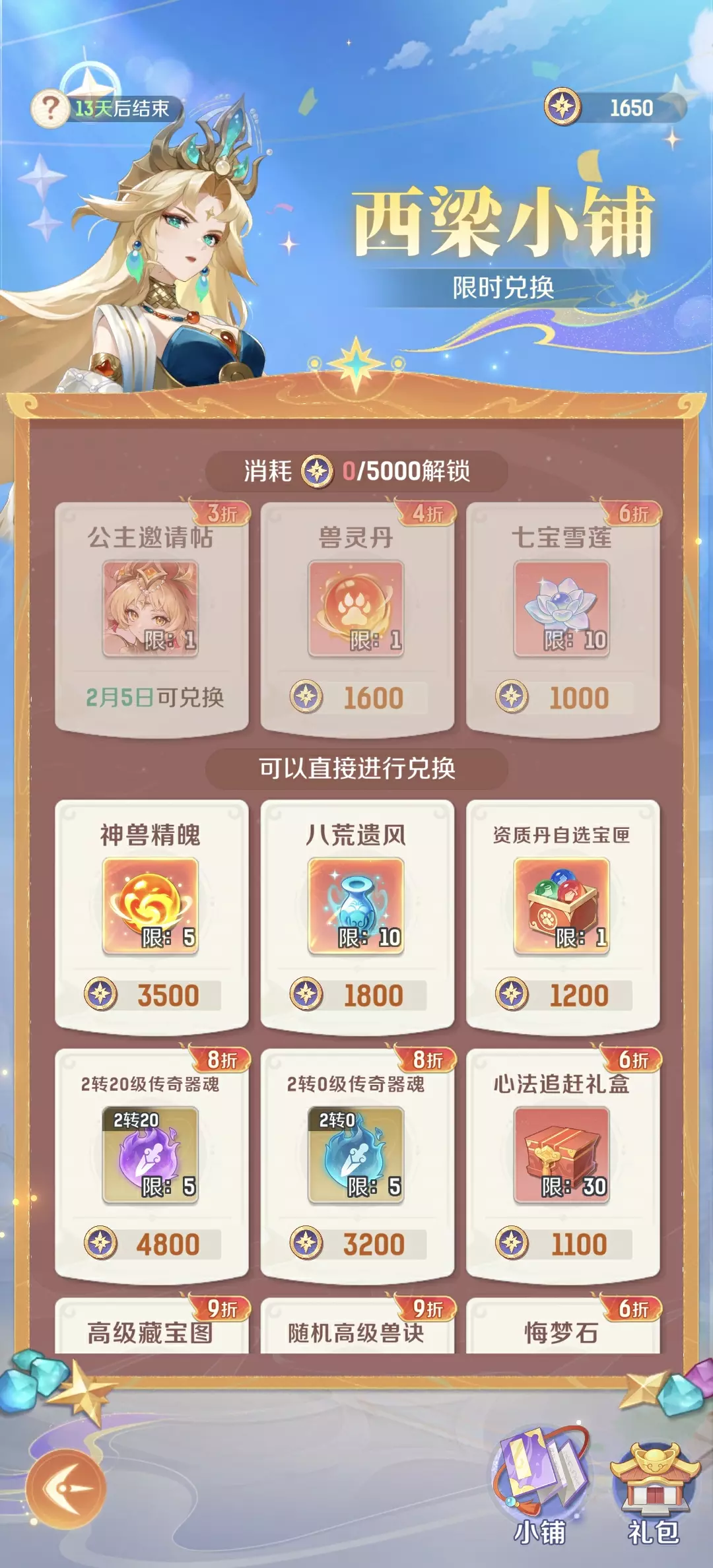 4.西梁小铺:可消耗星币兑换神兽精魄、八荒遗风等珍贵道具