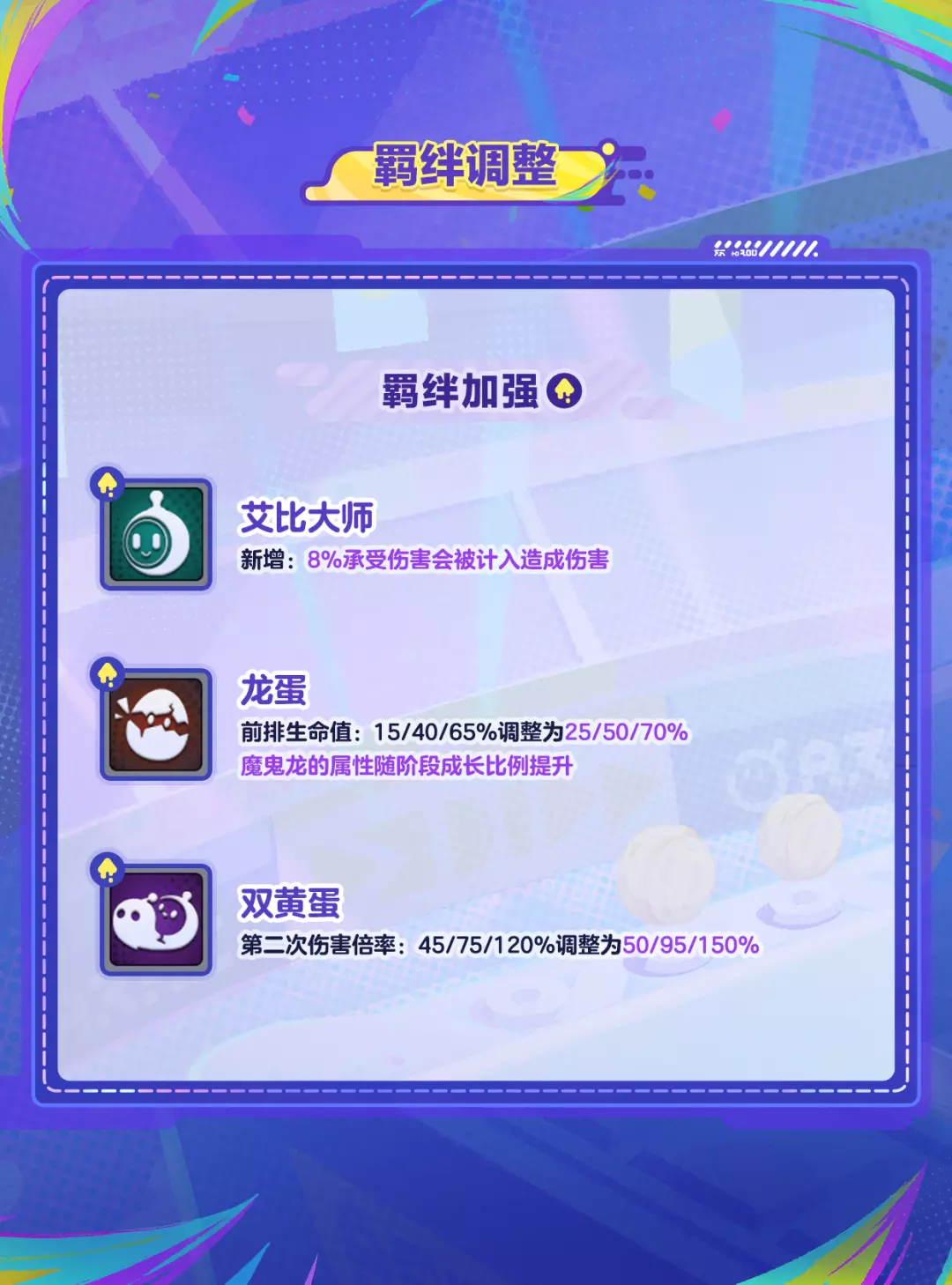 碰碰棋对部分蛋仔、羁绊、强化卡牌
