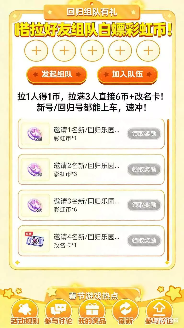 满3人直接6币+改名卡!新号/回归号都能上车,速冲!