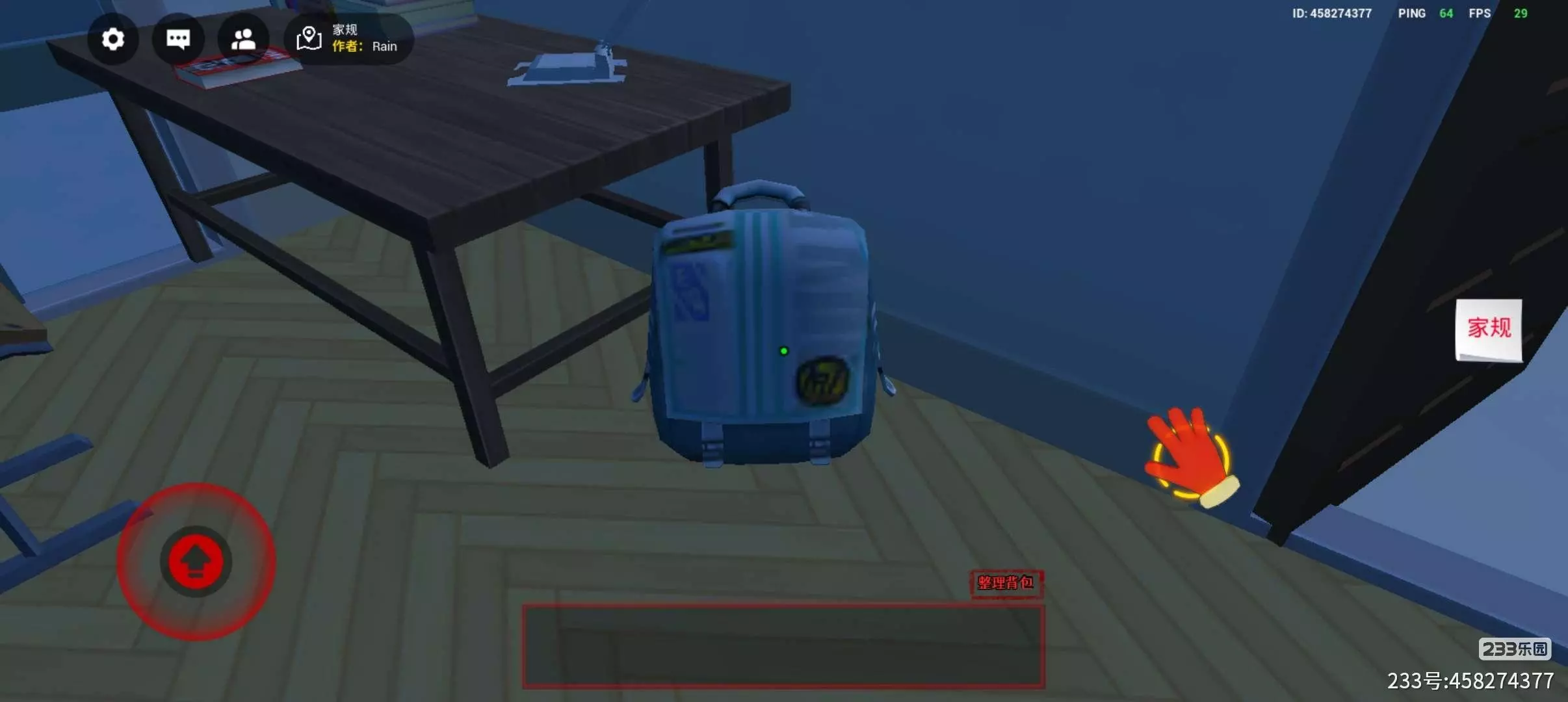 ②书包:在卧室书桌旁边。
