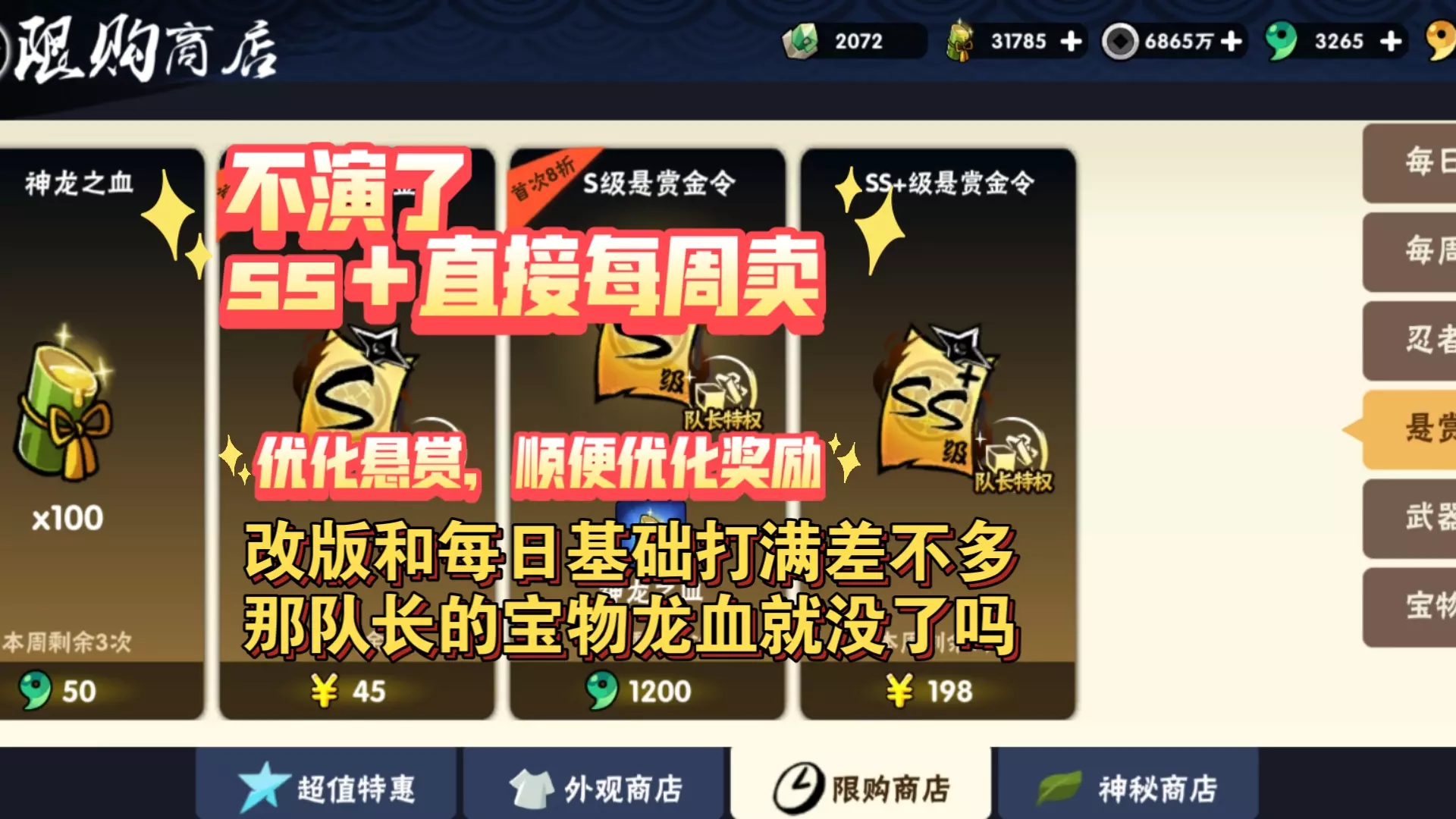 这是关于《忍者必须死3》悬赏令改版的内容,针对玩家对策划的质疑,该内容解析了改版的减负优化:将每日悬赏次数从17次减到4次,取消抢令机制,优化界面,且奖励总量不变,单次奖励增加,帮玩家理解改版用心。