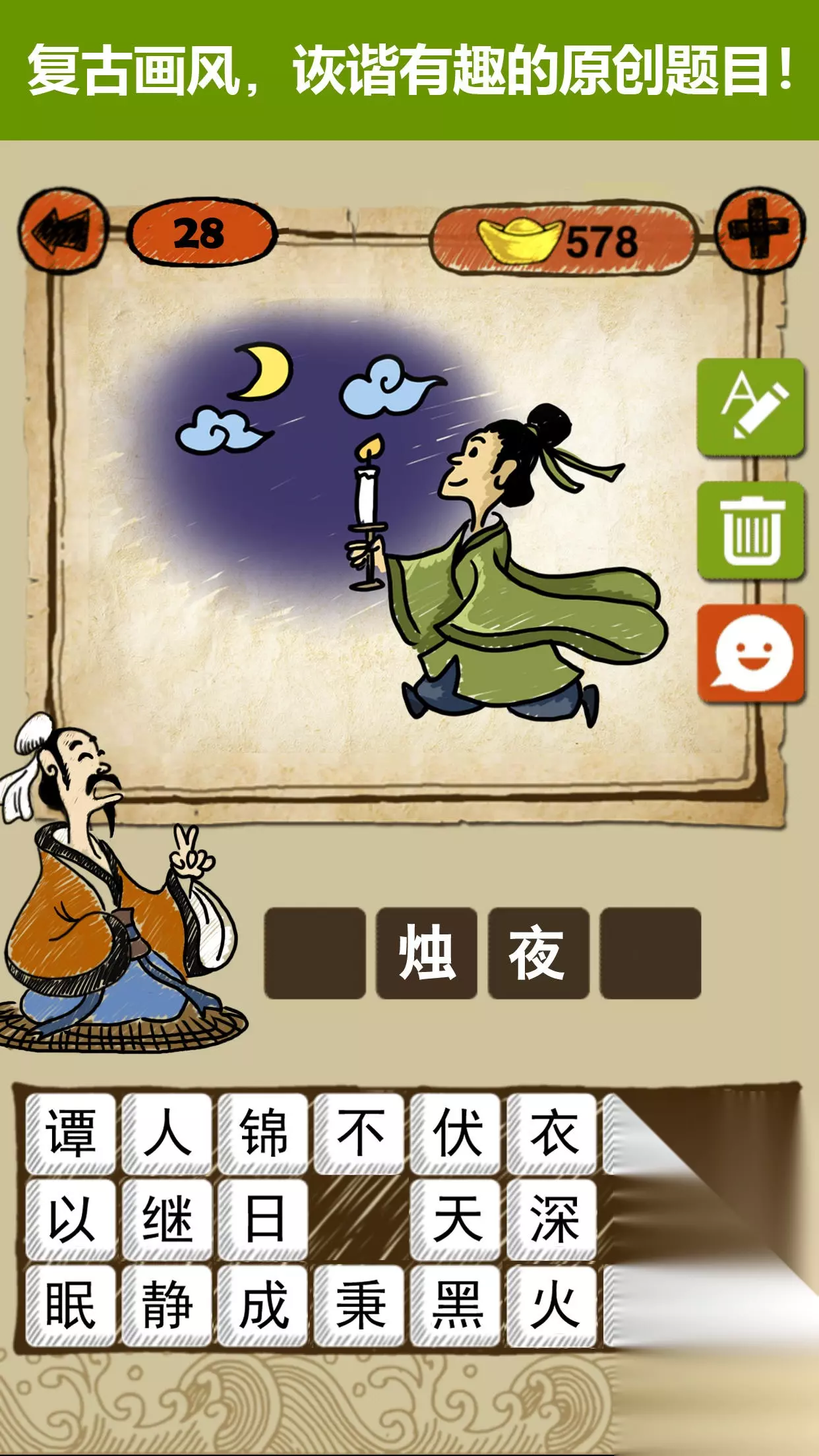 成语玩命猜值不值得玩?现在就为大家来简单分析下,看看这款游戏的玩法特点和游戏剧情介绍 。 成语玩命猜快速预约/下载地址(需优先下载233乐园APP): 手机扫码下载233乐园APP预约 预约订阅最新动态 优先233乐园APP下载 1、成语玩命猜简要评析: 1300个成语关卡,打造史上最强的猜成语游戏!复古画风,诙谐有趣的原创题目,连马伯庸等文化名人都爱玩它^o^ 寓教于乐,独一无二的中文猜谜游戏~独树一帜的画风,诙谐有趣的题目,用一幅画或几个字来猜一个成语,巧妙的图与字的结合,让你苦思冥想后恍然大悟,开怀一笑!寓教于乐,绝对是老少皆宜的文字游戏佳品!每关都有成语解释和汉语拼音,千钧一发的『发』是读fà还是fā?什么?!一五一十的『五』是读wú第二声,不是wǔ第三声啊>__ 2、成语玩命猜图片欣赏: