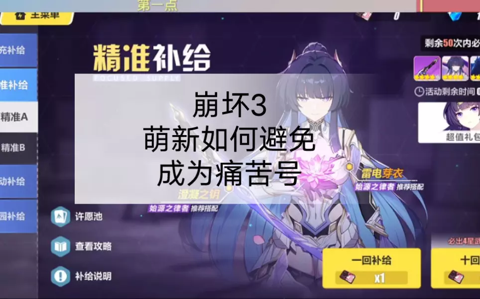 本期视频出一期萌新向的崩坏3攻略,简单讲了一下角色以及装备要怎么搞比较好以及崩坏3平常玩些什么各类玩法简单介绍,以及目前日常的商店买啥比较好,给各位萌新做个参考…