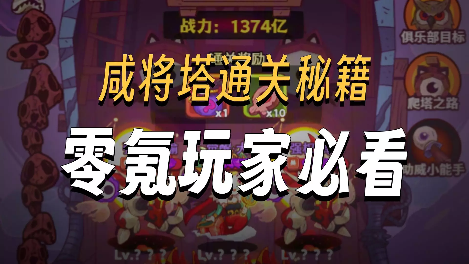 玩家分享《咸鱼之王》咸将塔琉璃1塔第10层通关经历,该关卡难度高,玩家打了40遍才通关,建议战力没到4000万不要尝试,通关后可获得进阶石、金币等奖励。