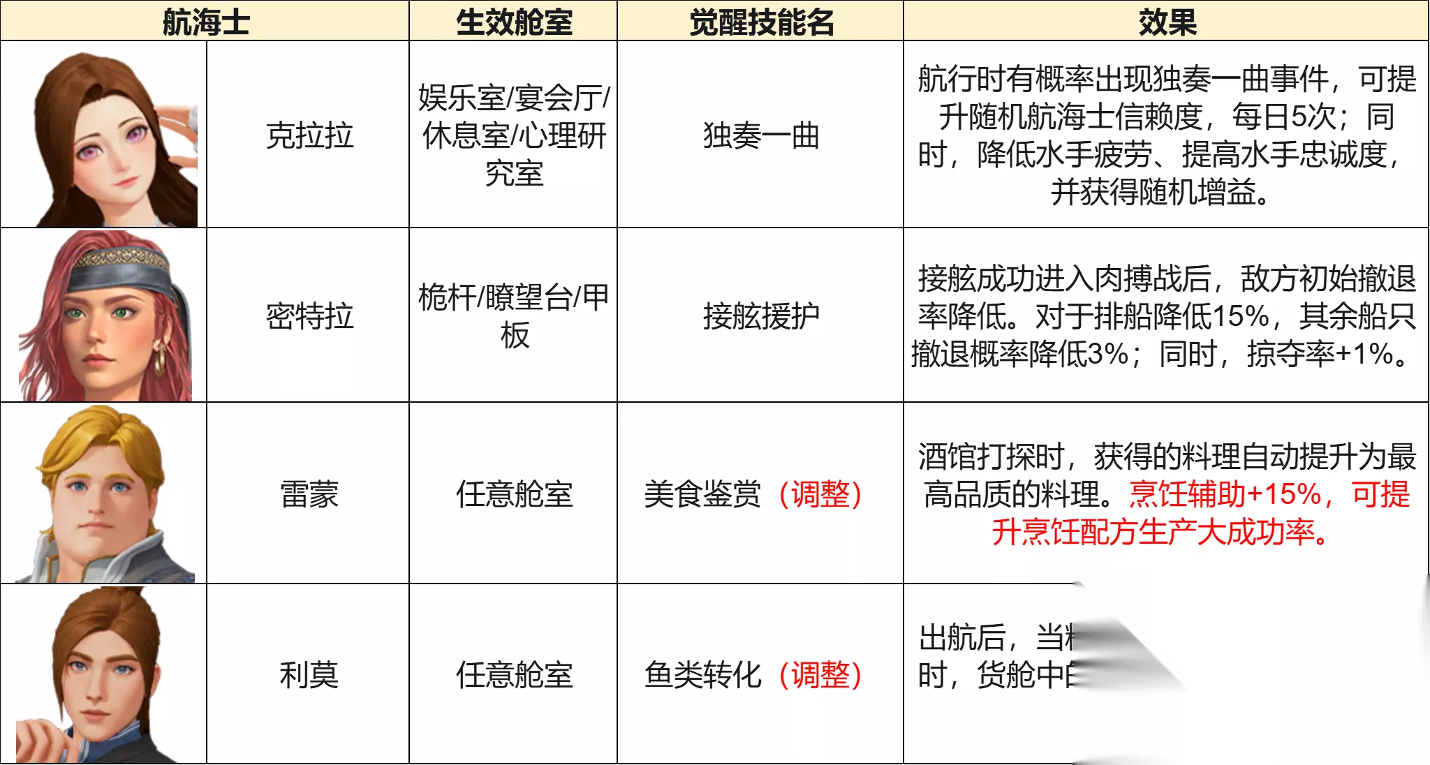 三、新增航海士觉醒&技能调整 春季版本更新后,将新增两位航海士觉醒。同时,两位航海士的技能会进行调整。