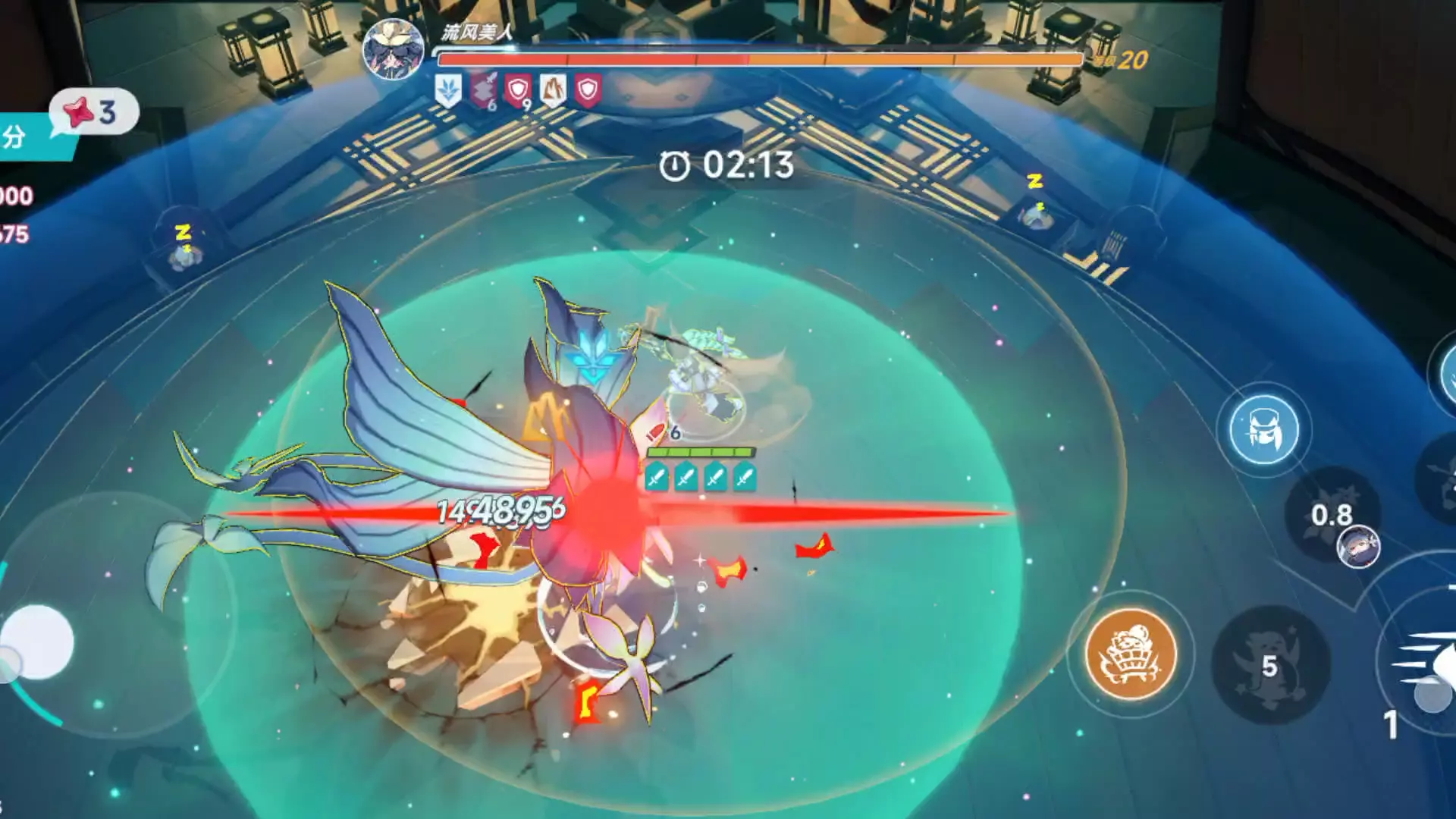 这是《星塔旅人》的联合讨伐玩法纪念内容,展示了挑战首领流风美人的战斗过程,最终拿下国服榜一,战斗中打出高额伤害,还呈现了积分、得分等战斗数据。