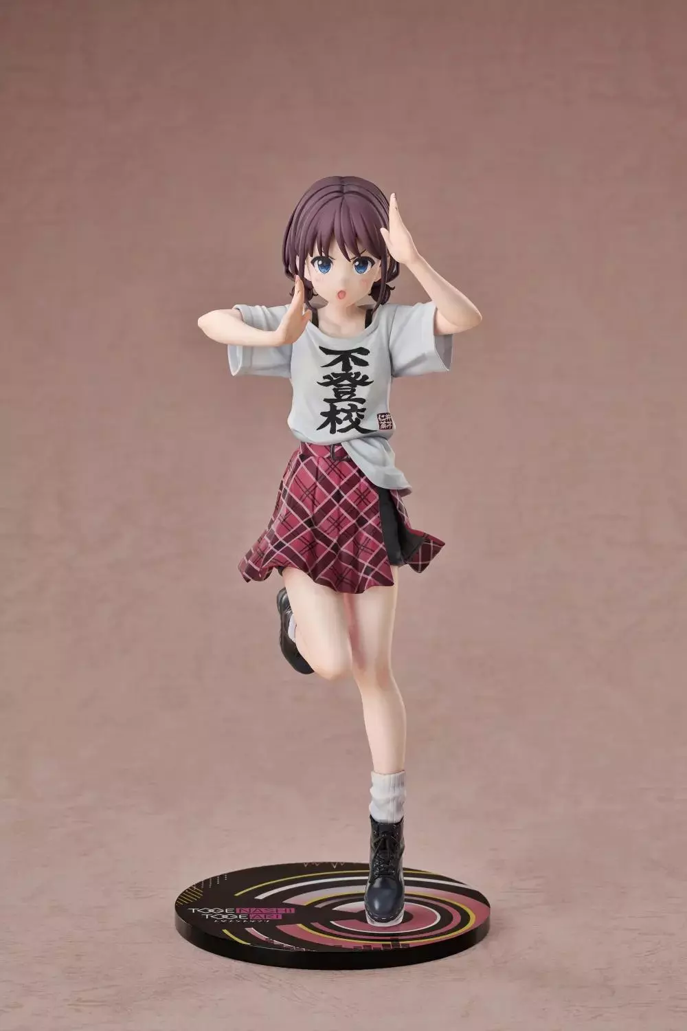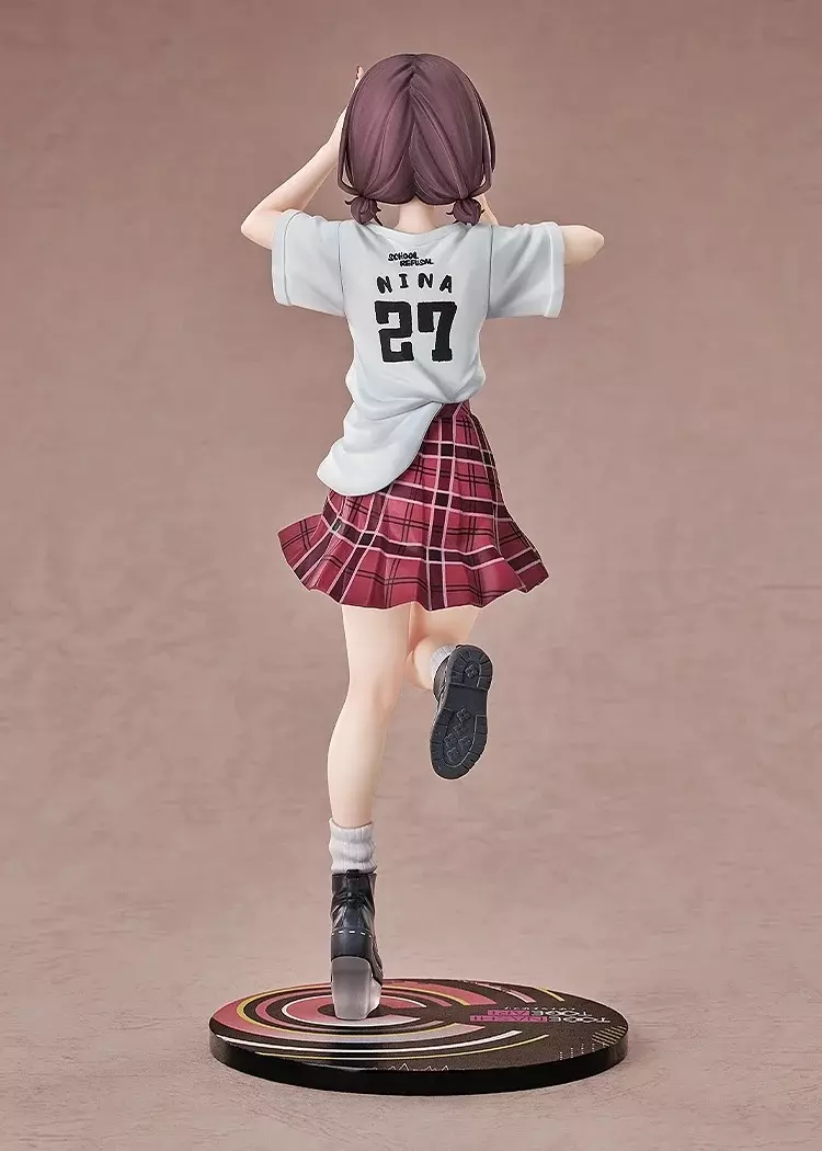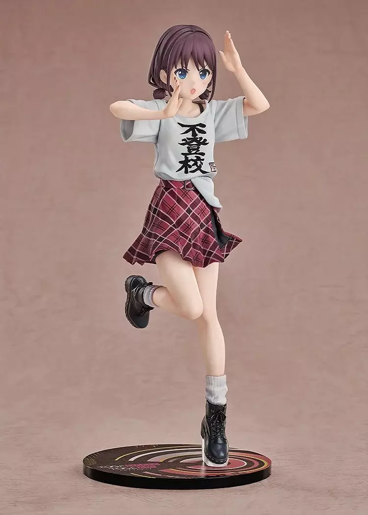 出自动画《GIRLS BAND CRY》,主唱「井芹仁菜」以第五话LIVE中印象深刻的「不登校T恤」造型化身为1/7比例手办登场! 宽松的T恤以自然的褶皱与柔和的阴影表现出布料的真实质感,胸前特别的文字印花也经过精密印制,完美再现动画中的造型。红色格子裙的细节经过精细的涂装进行了还原,富有跃动感的姿态展现了仁菜独特的个性。 敬请将这位全力歌唱,留下爪痕的「井芹仁菜 不登校Ver.」迎接到你的身边吧!特典:「新川崎(暂名)」亚克力立牌