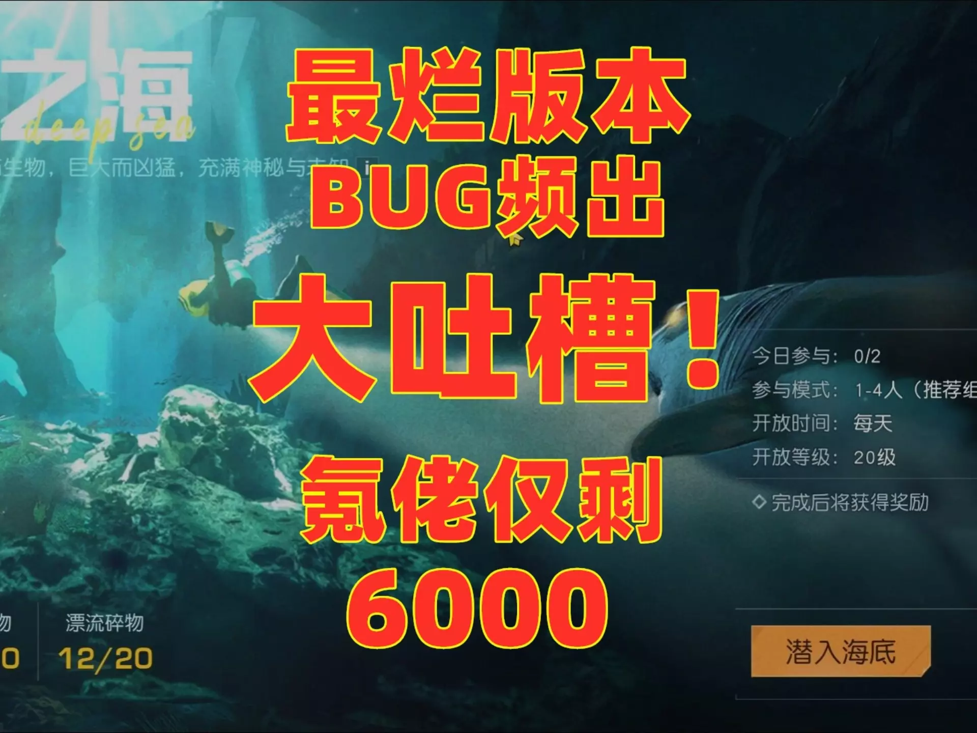 黎明觉醒继续吐槽 180堪称自公测一来最烂的版本没有之一 海底地图为半成品 介绍中的内容基本都未能实现 轮换难度飙升 禁区进不去 火锅玩法还没出奖励就已经发了 …
