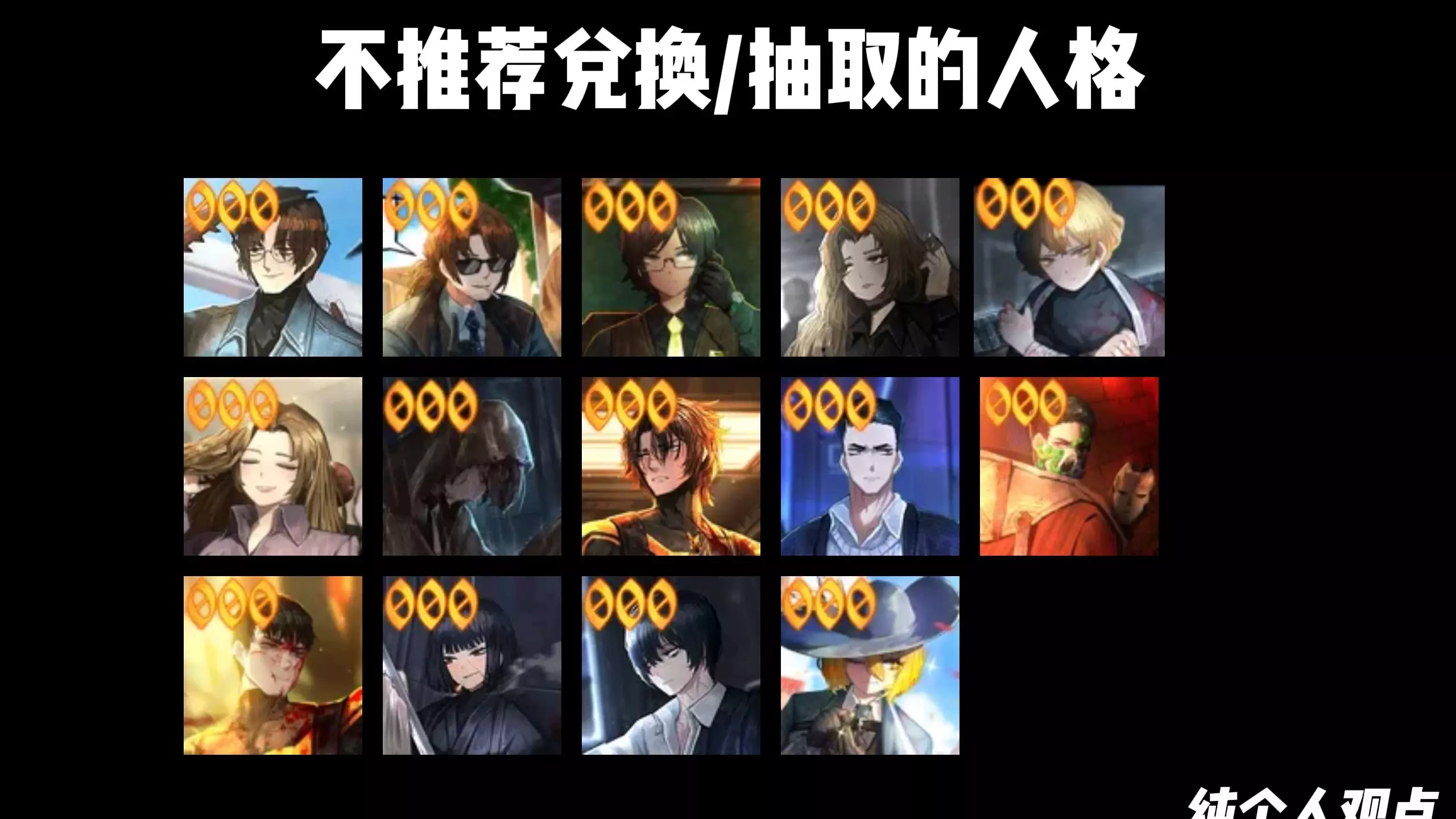 纯个人观点,有一些人格其实可以用,但是为什么不去练更强的人格呢,故不推荐萌新去练 毕竟前期资源很宝贵,有需要看box的萌新可以把图发到评论区里,看到了都会回复