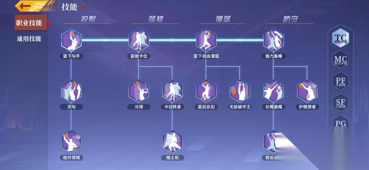 传统中锋(TC)是球场上的“禁区王者”——以力量、高度和统治力为核心,主打篮下终结、护框威慑与篮板掌控。他是团队的“定海神针”,也是对手最怕面对的内线巨兽!
