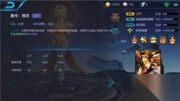 大招-指令:毁灭 技能解析:女娲在短暂延迟后,会向指定方向释放能量,对路径上的敌人造成法术伤害。