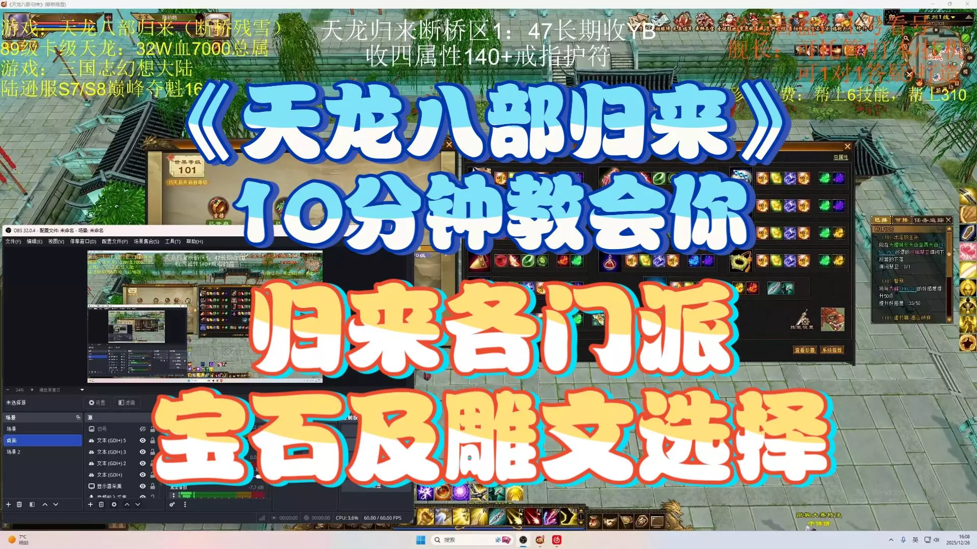 天龙八部归来新人攻略来啦,如何进行数值养成宝石雕文装备篇