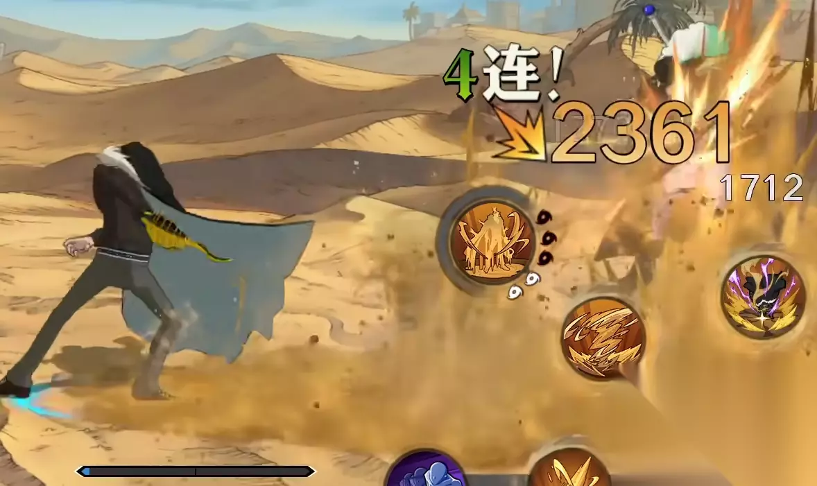 当元素能量点大于或等于3时,可以使用子技能进行元素化,这会消耗三个能量点期间免疫武装色外的所有攻击,并且受到攻击所有技能按钮点击会变成嘲讽动作,保持嘲讽动作一定时间,能减少双技能冷却,他的奥义技会飞向天空,在蓄力之后重击地面,将地面给击碎的同时创造出巨大沙暴,此时场地会出现沙漠场景后,并随着老沙的元素能量增强而强化,强化5次后能获得一个额外援护,让沙暴移动造成大范围伤害,此时长按会让敌人被卷入到天空之中,蓄力后向其丢出沙暴,他的终结技会飞扑攻向敌人,贴近的瞬间又快速消失,对敌人打出那穿心一击。
