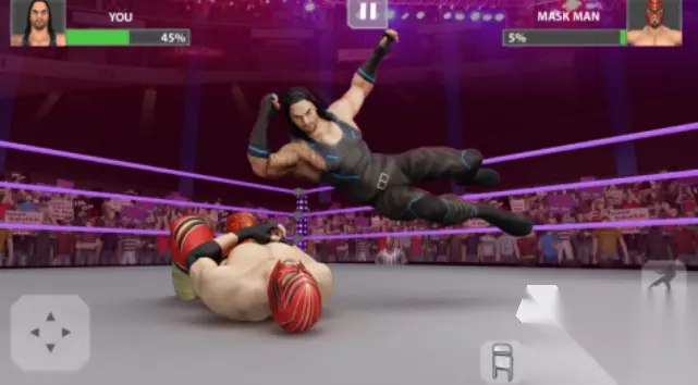 这款画风超级搞笑的竖屏摔跤游戏玩起来爆笑不断,两个玩家要化身摔跤高手在各种地图上进行PK挑战,抱在一起较劲摔跤的画面喜感十足,蹬腿、出拳等超多摔跤动作随意使用,在单人模式下你也可以跟强大的AI人机练习摔跤的窍门,趣味性十足的简单操作让摔跤高手们越玩越上头。 高速下载 普通下载 5、《wwe美国职业摔角》