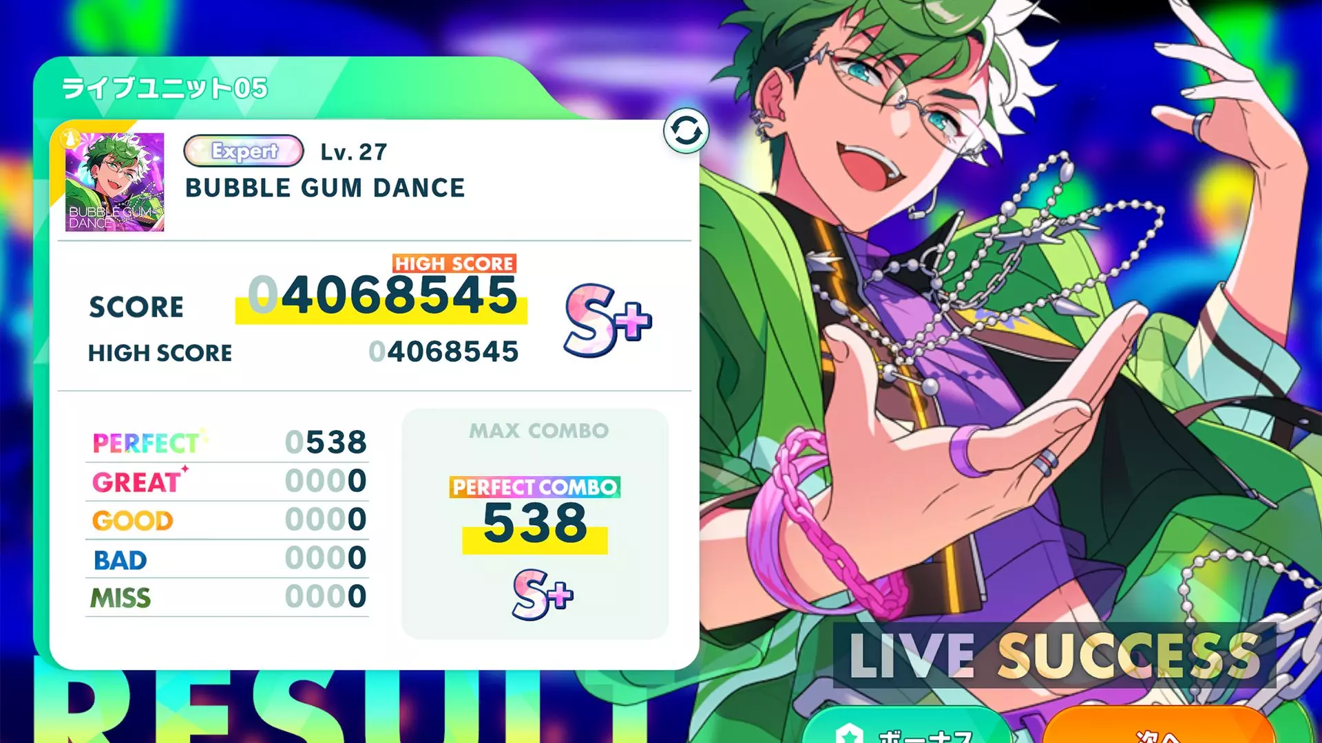 这是音游《Ensemble Stars!! Music》的游玩分享,玩家完成了难度为Lv.27+EX的曲目《ONLY YOUR STARS!(10th Anniversary Mix)》,达成了PERFECT COMBO的成绩。