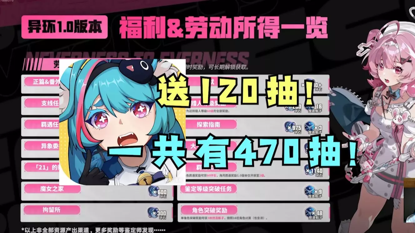 《异环》前瞻内容曝光,游戏有常驻棋盘抽卡活动,前5次10连8折,50次掷骰可选S级角色;还有登录赠礼、免费获取S级角色小吱等福利,1.0版本轻松得120+抽,加上劳动所得可获470抽以上,还有娜娜莉时装可获取。