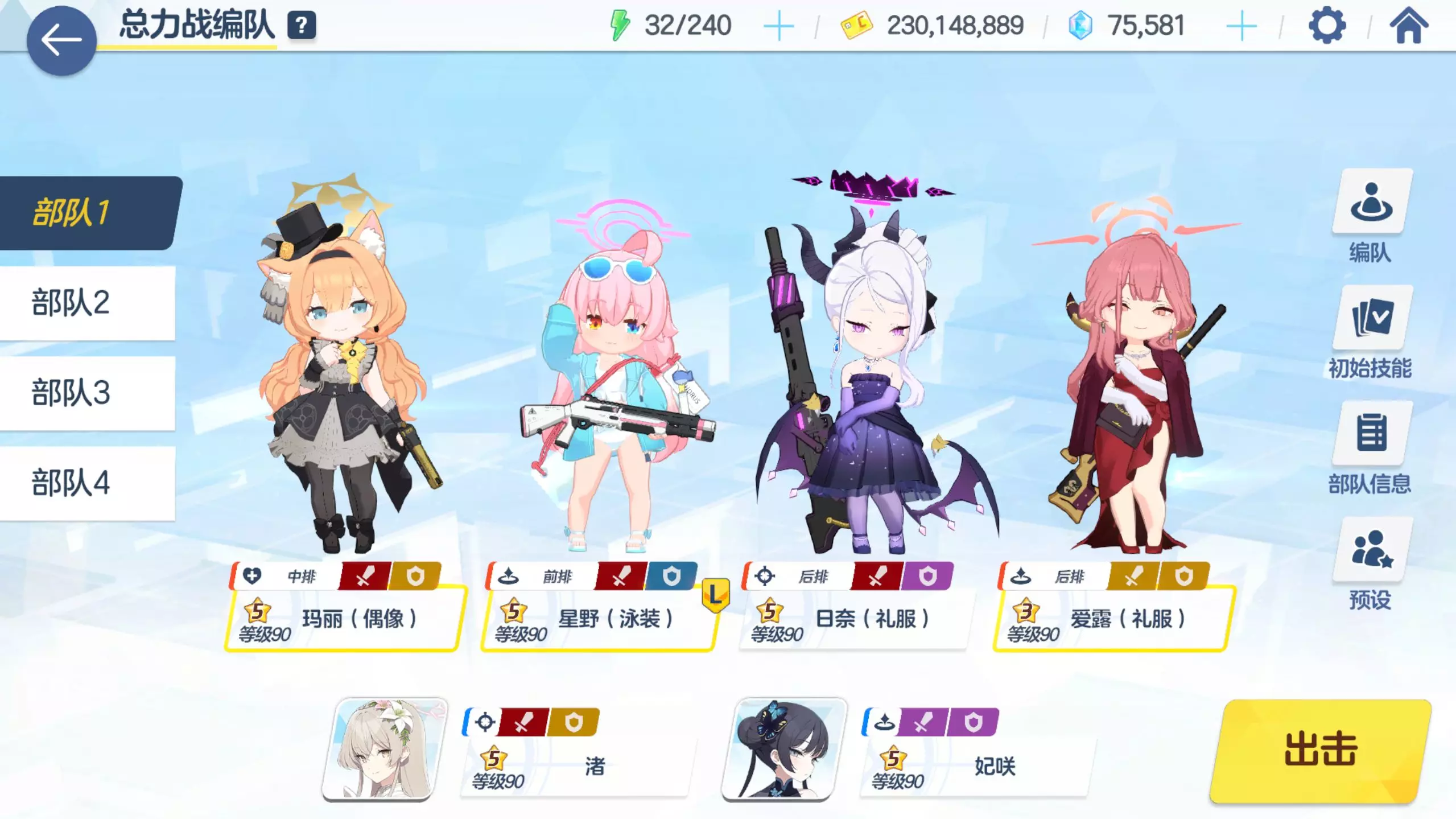 这是二次元手游《蔚蓝档案》的平民配队攻略,展示了一套可一刀通关ins街区主教希罗尼穆斯的编队,包含玛丽(偶像)、星野(泳装)等角色,适合平民玩家参考使用。
