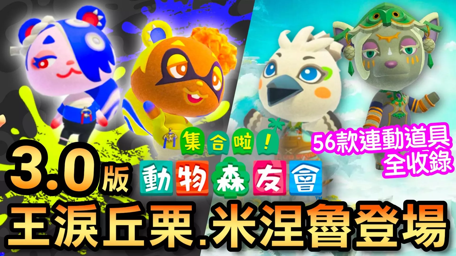 🏝️ 动物森友会3.0版超级联动来了! 这次更新带来了超人气的跨作品角色: 🗡️ 萨尔达传说系列:丘栗、米涅鲁 🦑 斯普拉遁系列:莎莎、曼曼 📱 本影片…