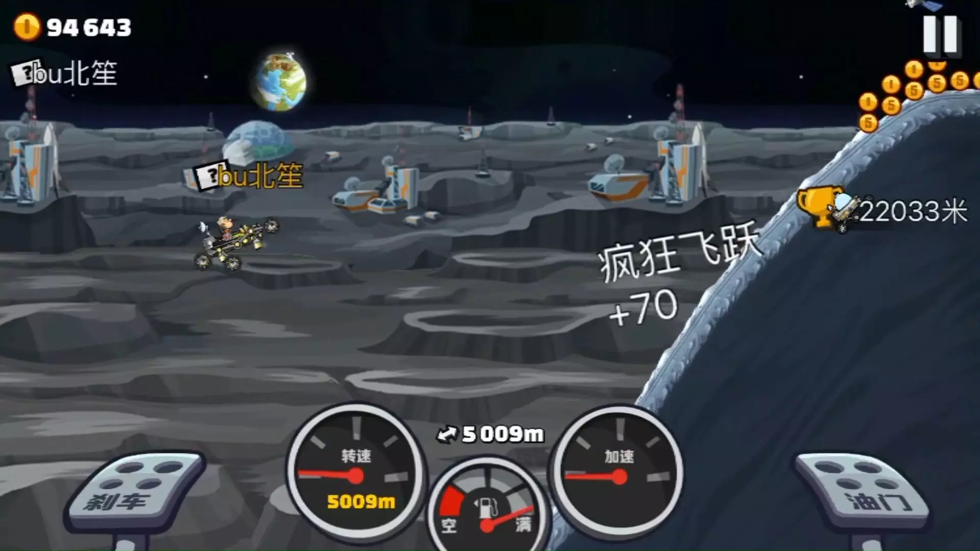 这是《登山赛车2》的游戏实况,玩家驾驶登月车在荒漠赛道行驶,最终达到9957米时失败,过程中可收集金币,体验赛道驾驶的乐趣与挑战。