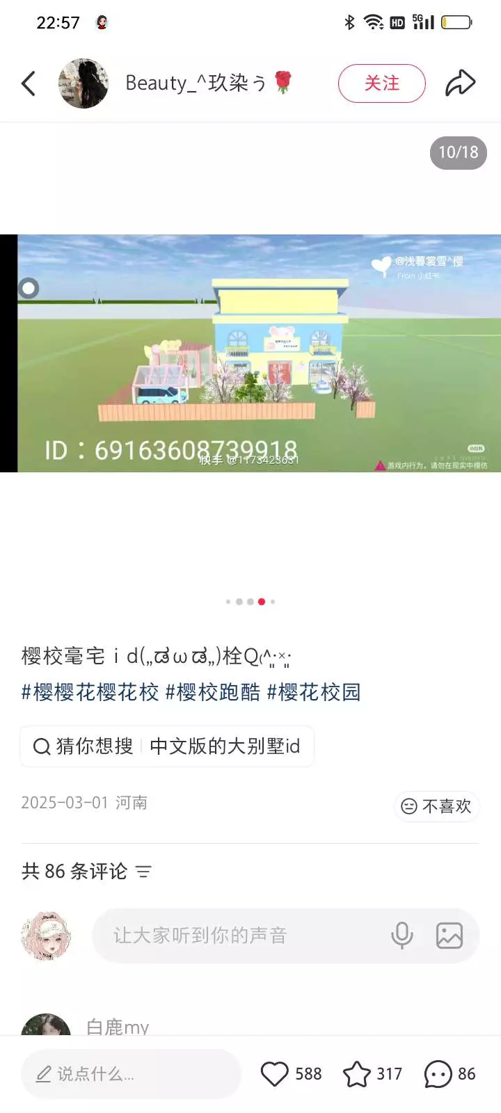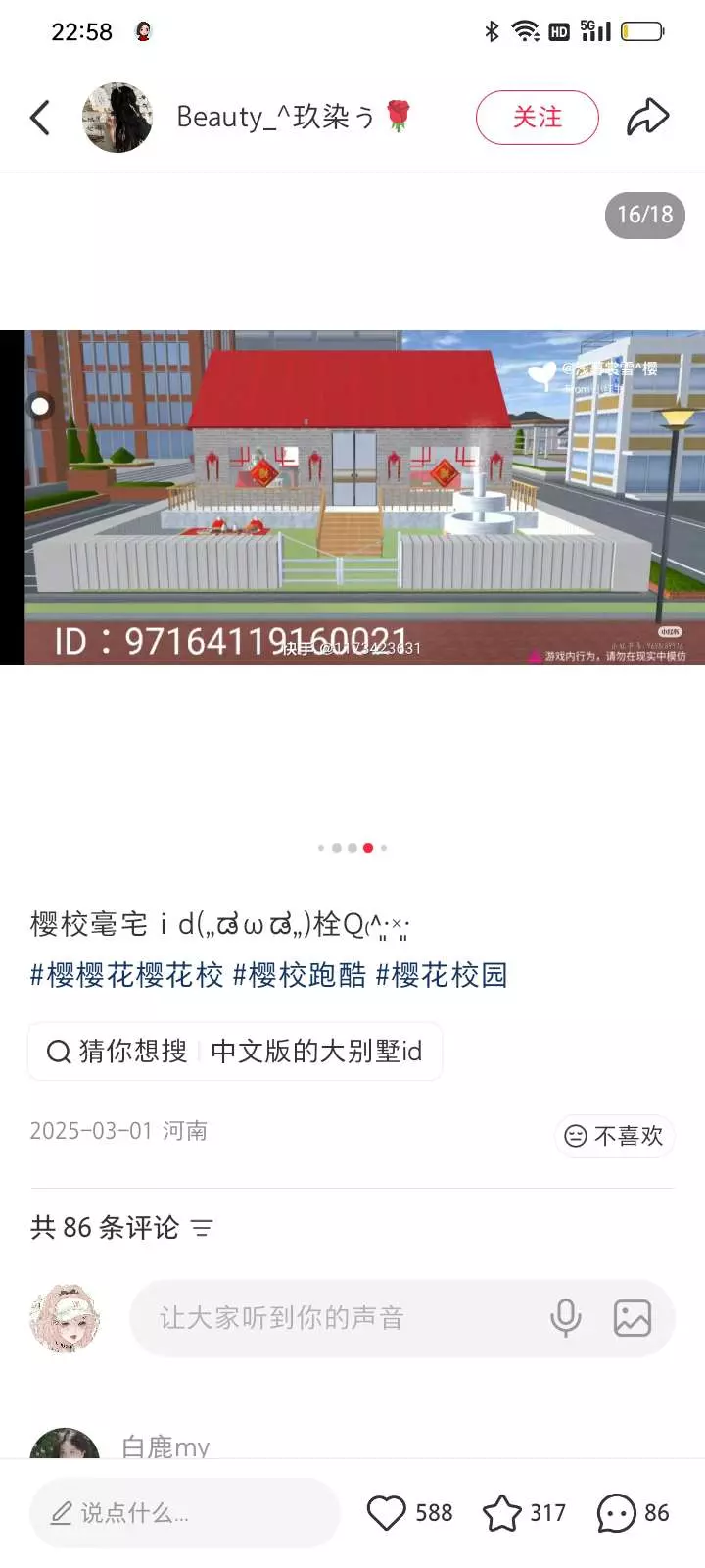 喜欢截图保存哦,房子的ID,本人不知道这是不是真的,就是无畏的收藏,收藏,收藏