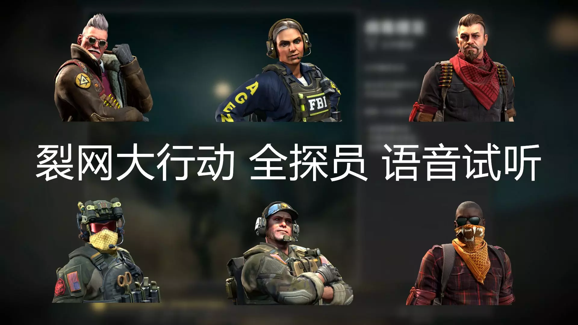语音内容包含:开始行动 拆包/埋包 投掷烟闪雷火,基本都是日常游戏里听最多的语音 探员目录 SAS 0:06 海豹突击队 2:15 FBI 4:06 KSK 4…