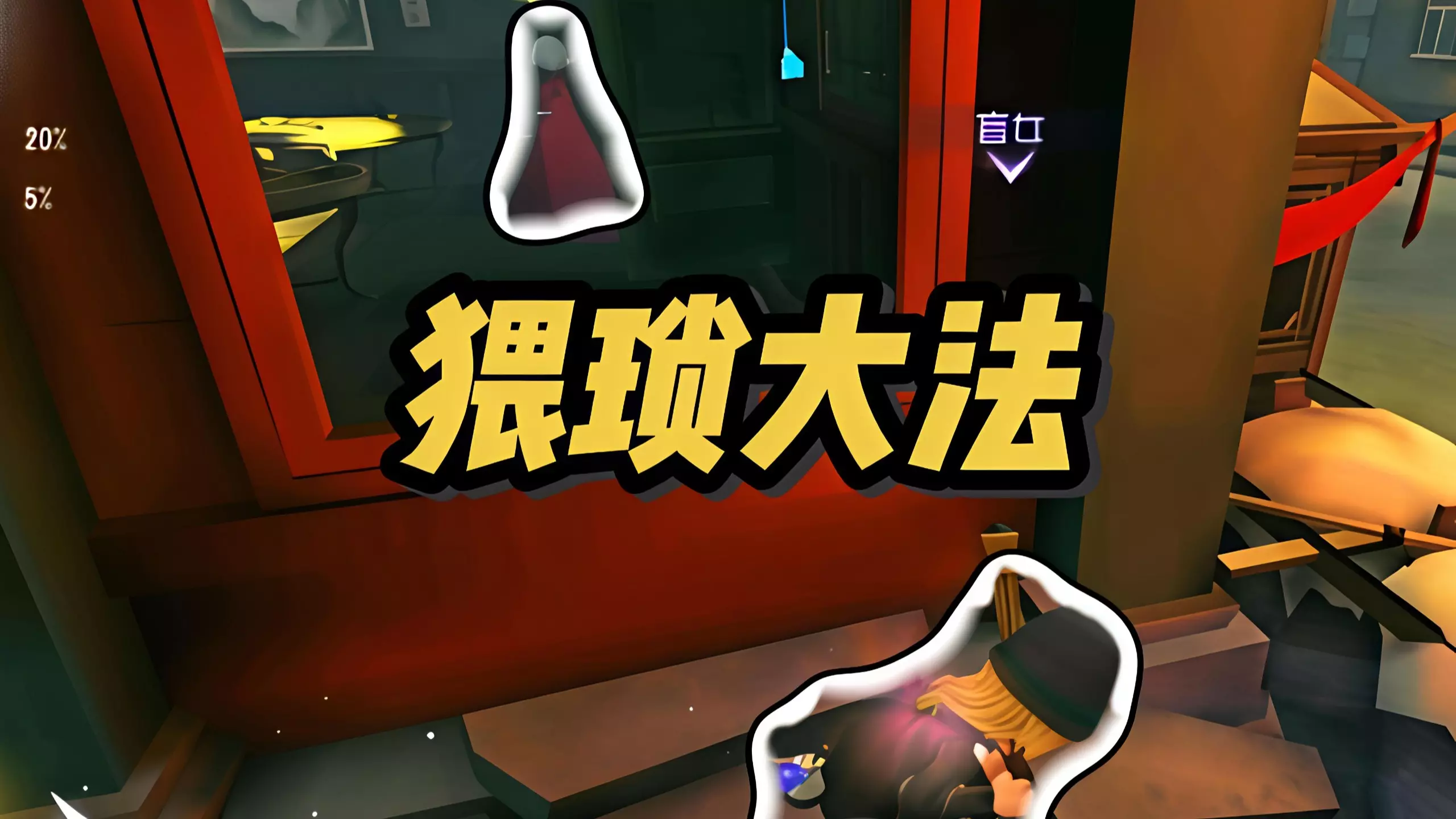 这是一则《第五人格》的游戏内容,看似教学,实际展示了在对局里利用大房等地形,通过绕地形的手法牵制监管者孽蜥的操作,还提及要找优势地形、注意弹射时间等技巧。