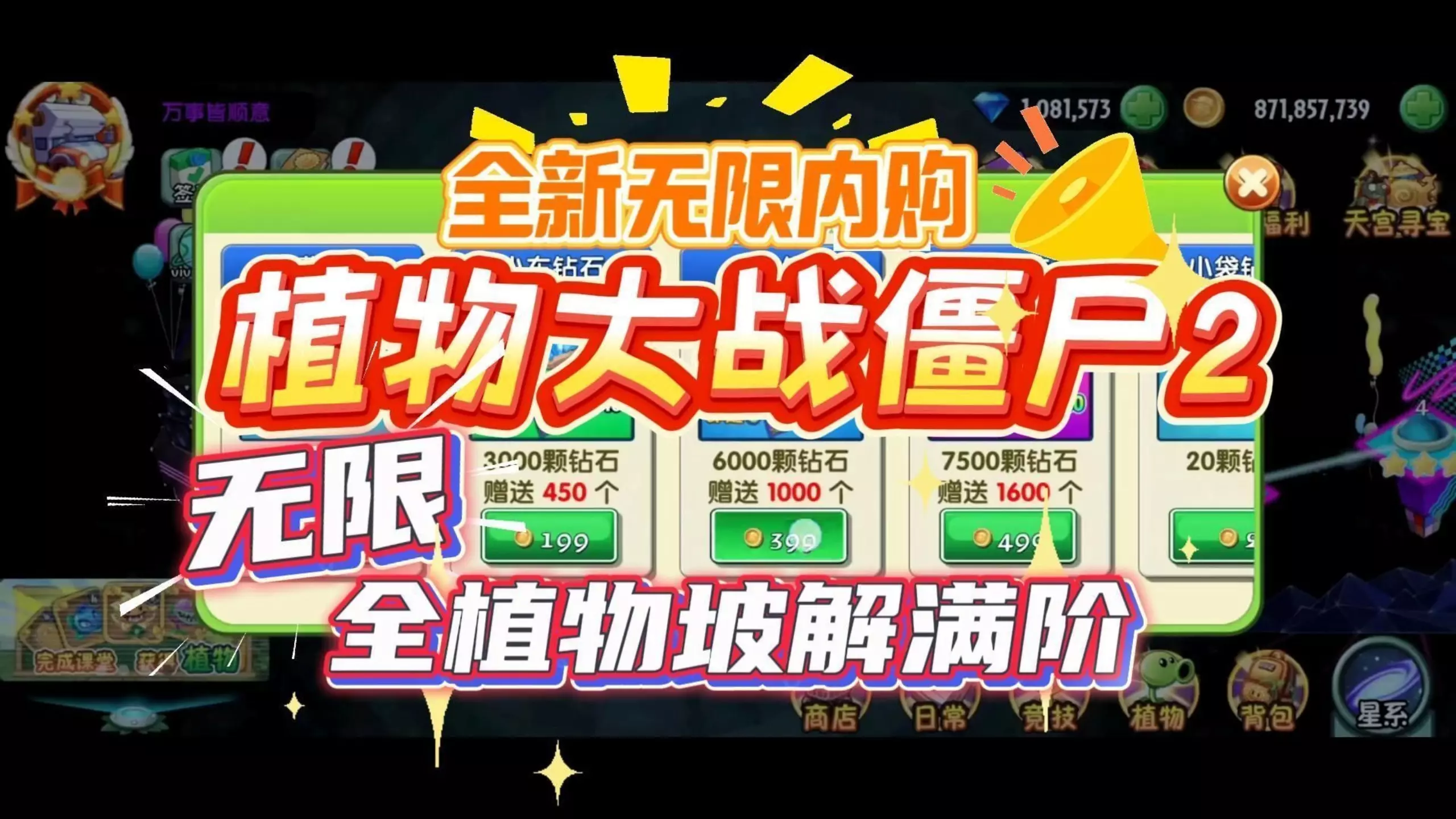 这是植物大战僵尸2破解内购最新版,该版本已全面解锁隐藏福利,玩家可以轻松领取稀有材料,快速完成植物养成,体验完整的游戏玩法内容。