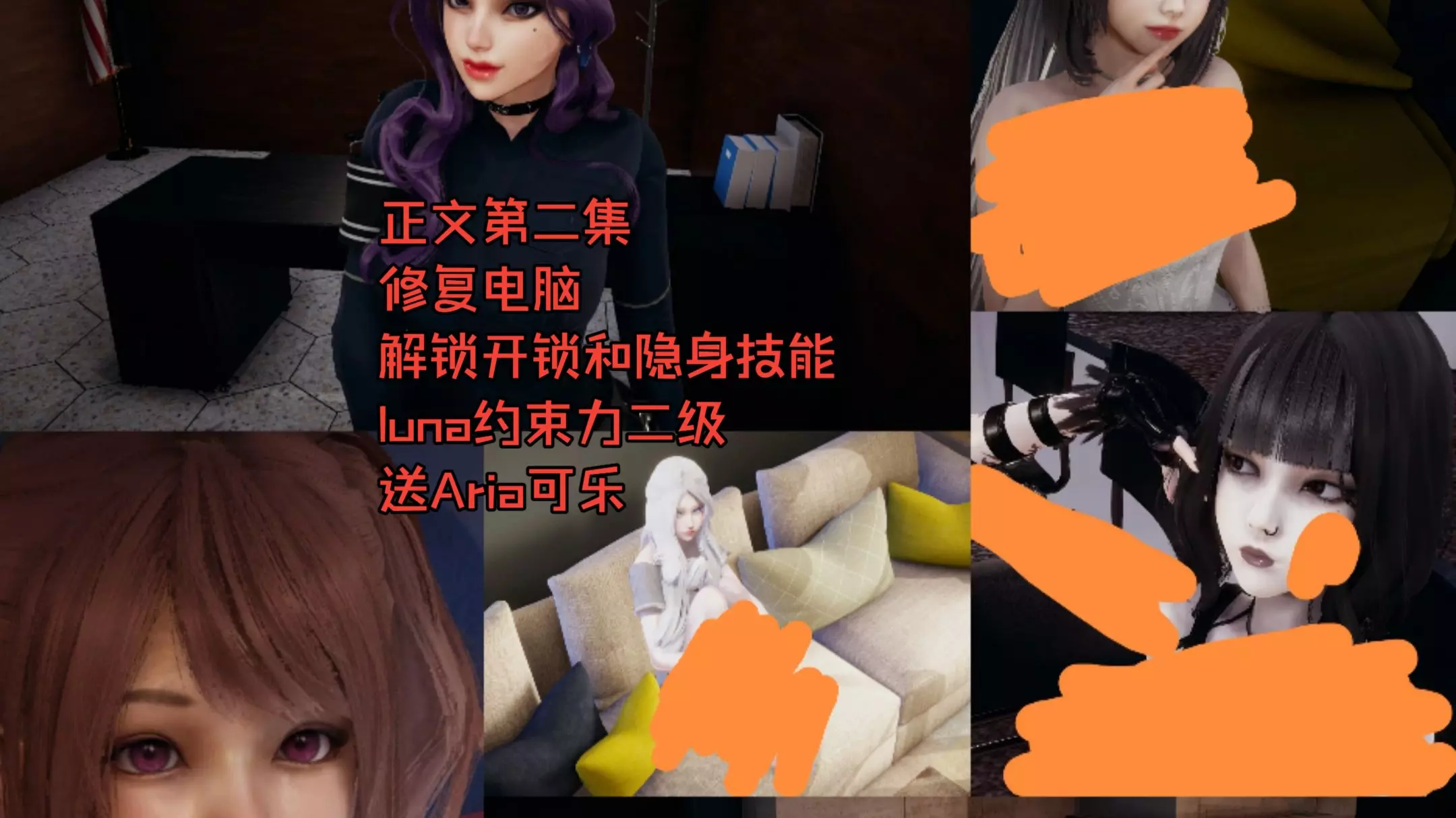 正文第二集, 修复电脑,解锁开锁和隐身技能,luna约束力二级,送Aria可乐