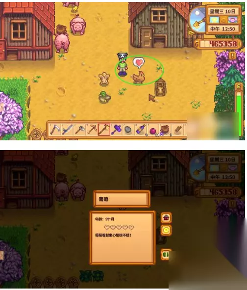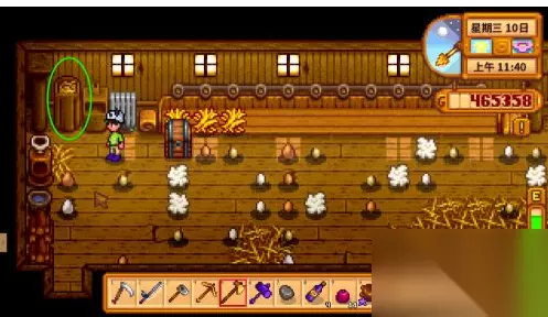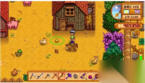 下面为您介绍星露谷养好鸡,出优质大鸡蛋的方法: 1.溜鸡。在鸡舍外有个小门,点一下就打开了,这个出口是让鸡散步用的,鸡出来散步可以自己找食物,并且心情愉快。傍晚五点鸡自动回归鸡舍,此时要把鸡舍门关起来,否则鸡心情差还可能被别的动物吃掉。