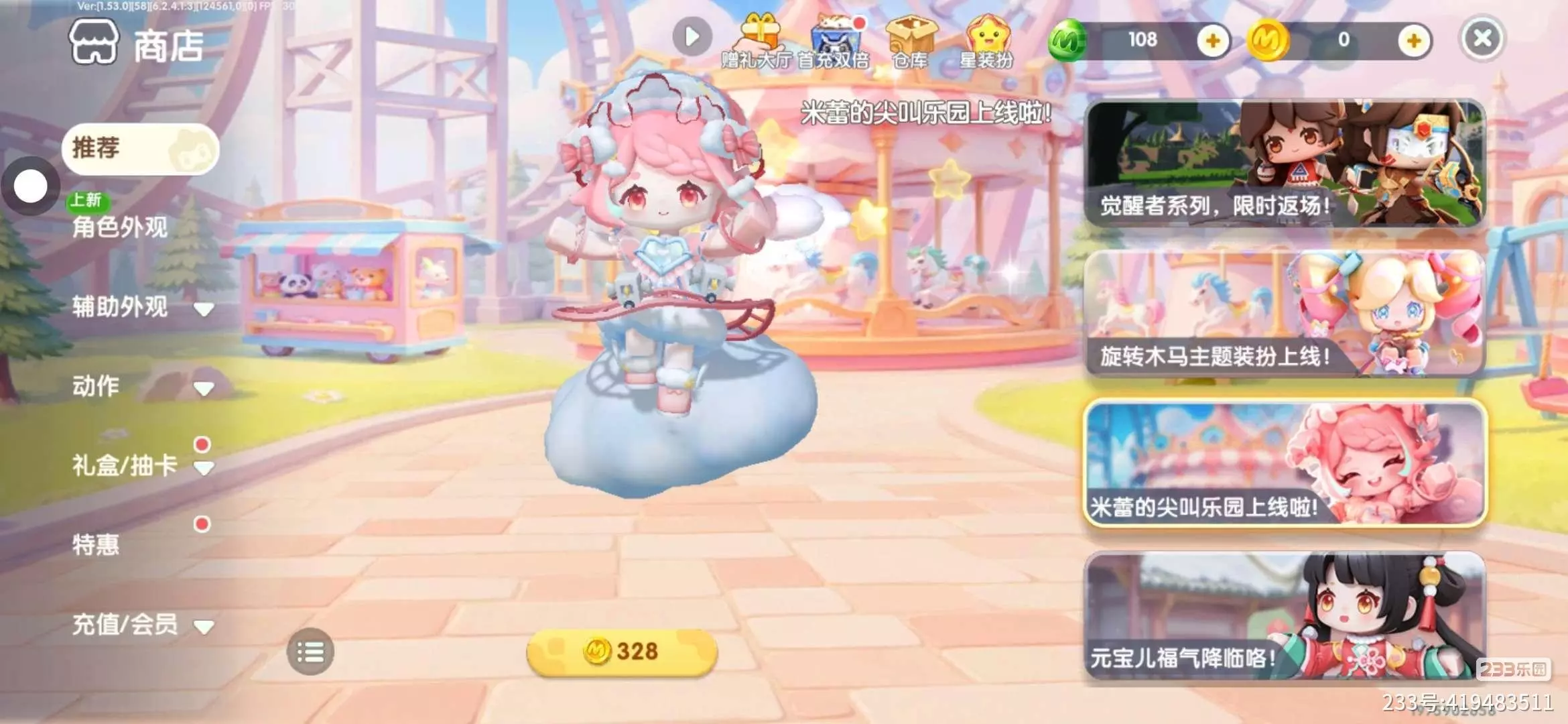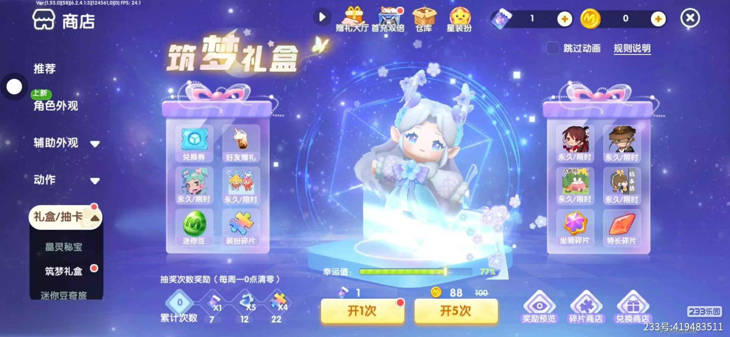 更让我开心的是皮肤和福利的变化。以前想要个好看的皮肤,要么得单独氪金,要么等很久才会返场,看着别人的限定皮肤只能眼红😭。现在233乐园里直接上线了“筑梦礼盒”,抽几次就能拿到绝美限定皮肤,比如最近的“米蕾的尖叫乐园”系列,粉蓝配色的云朵坐骑和可爱的卷发造型,直接戳中了所有少女心!🥳 而且迷你豆、装扮碎片的获取渠道也变多了,日常登录、完成任务就能领,不用再为资源发愁,攒了一周的碎片直接换了一套古风皮肤,成就感拉满💰。
