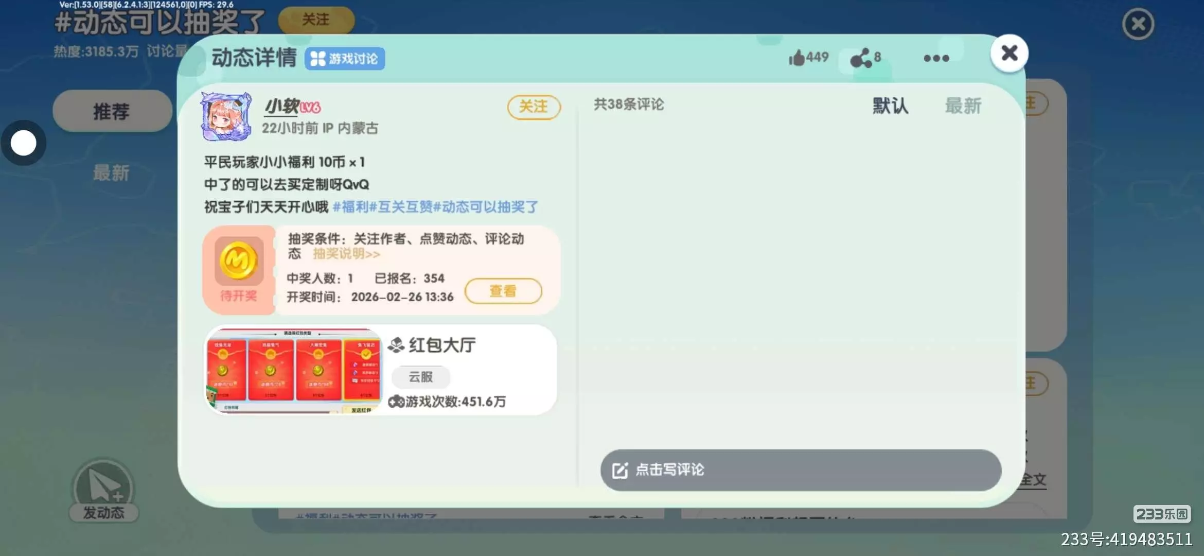 从版本滞后到同步更新,从皮肤稀缺到福利满满,再到社区氛围的提升,233乐园这波“听劝”真的赢麻了!能感受到运营团队是真的在认真看玩家的反馈,把我们的吐槽变成了实实在在的优化👏。希望233乐园能继续保持这种“听劝”的节奏,未来上线更多优质游戏和福利活动,让我们这些玩家一直“真香”下去!
