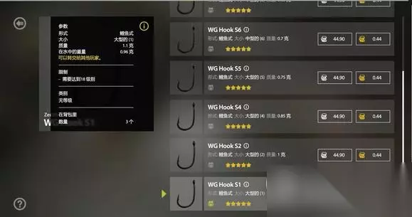 黑色加口鲤鱼钩子:(需要等级达到18级)